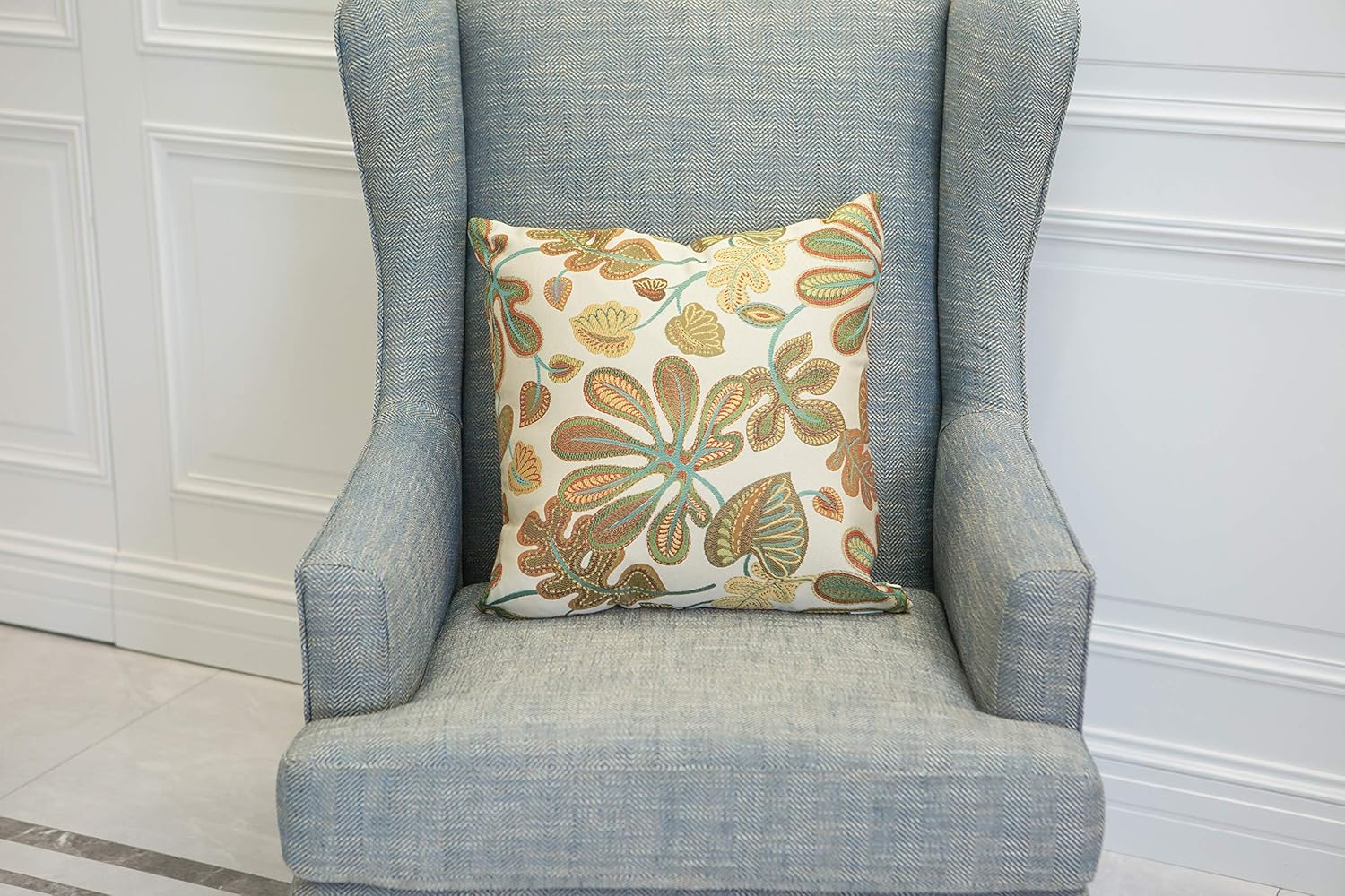 Set of 2 Jacquard Tropical Leaf Pattern Throw Pillow Covers Decorative Pillowcase 20X20 Inches,Teal Cream
