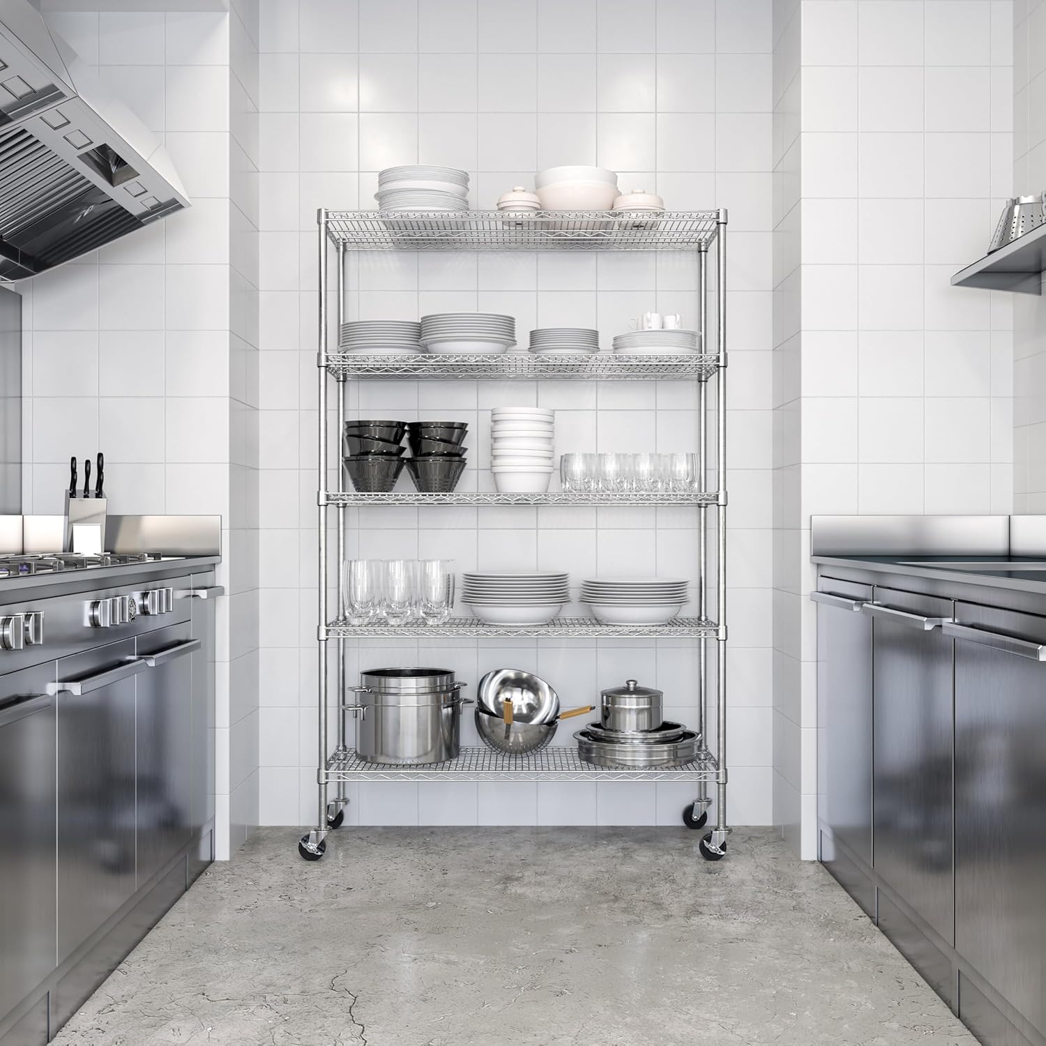 Seville Classics UltraDurable Heavy Duty NSF Solid Steel Wire Rack Storage Unit Organizer for Garage, Warehouse, Office, Restaurant, Classroom, Kitchen, 5-Tier Shelving, 48" W x 18" D