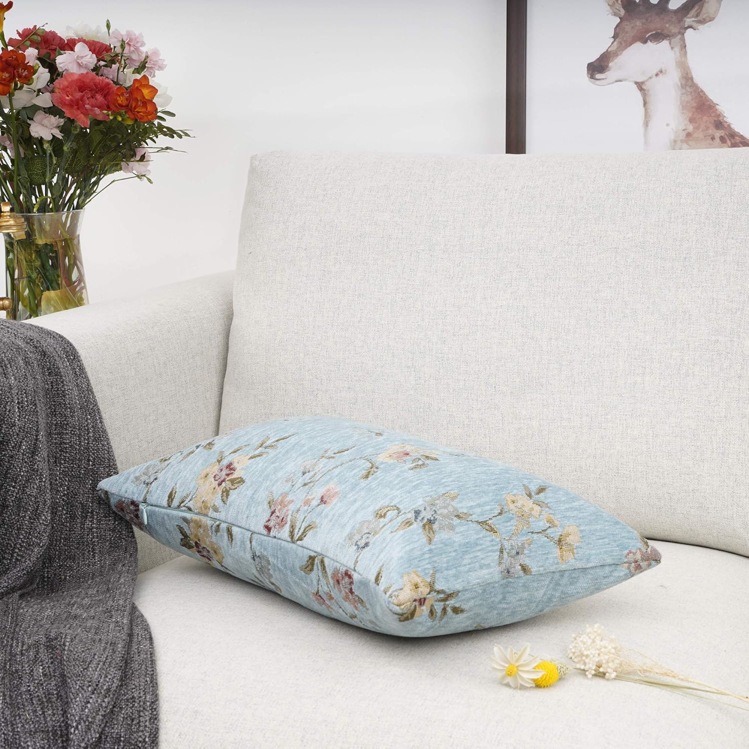 YOUR SMILE Classical Embroidery Jacquard Farmhouse Oblong Rectangle Chenille Teal Floral Pattern Decorative Throw Pillow Case,12x20 inch