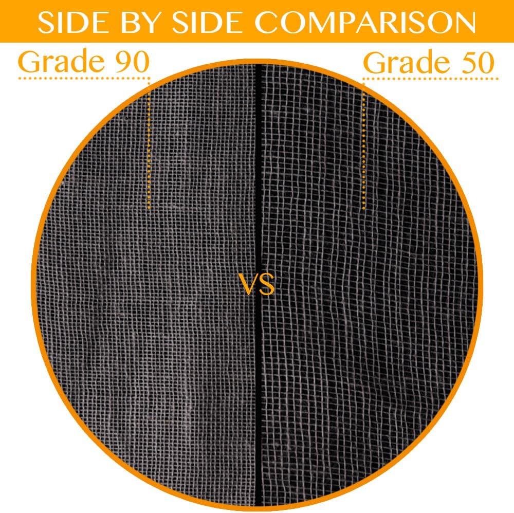 - GRADE 90 CHEESECLOTH - 100% Grade 90 cheesecloth is much higher and better quality compared to lower grades such as Grade 50, and this cheesecloth can be washed and reused, unlike other cheesecloth brands and substitutes which just for one-time use