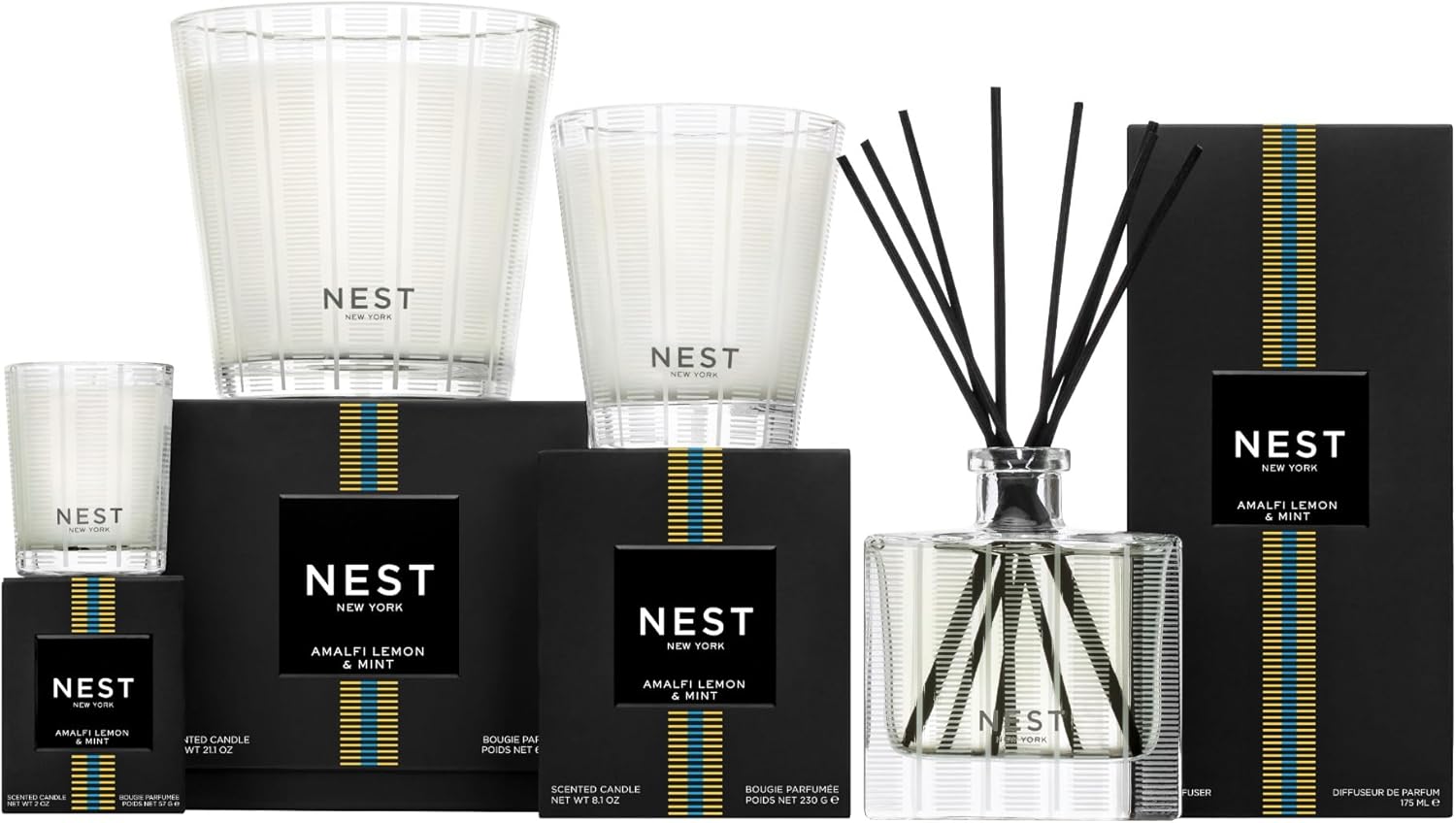 NEST New York Scented Classic Candle, Amalfi Lemon & Mint - 8.1 oz - Up to 60-Hour Burn Time - Reusable Glass Vessel