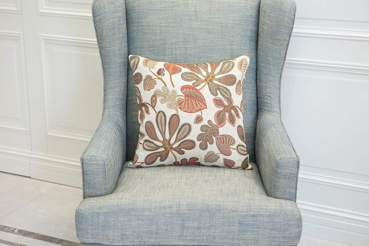 Set of 2 Jacquard Tropical Leaf Pattern Throw Pillow Covers Decorative Pillowcase 22X22 Inches,Coral Cream