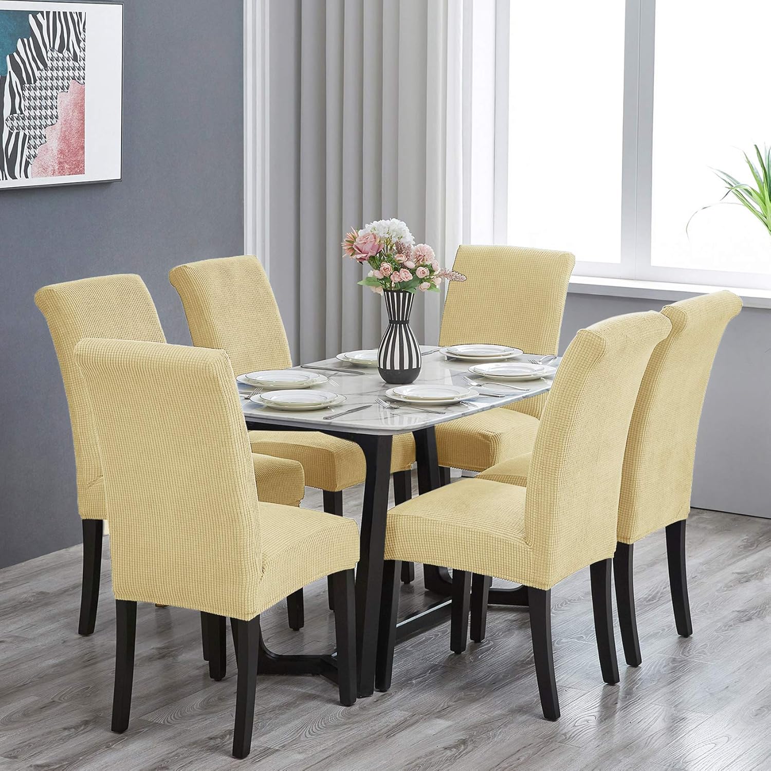 Howhic Stretch Chair Covers for Dining Room Set of 6, Removable Washable Dining Room Chair Covers, Dining Chair Slipcovers Seat Protector, Great Decoration for Home and Banquet (Champagne, 6 Pack)