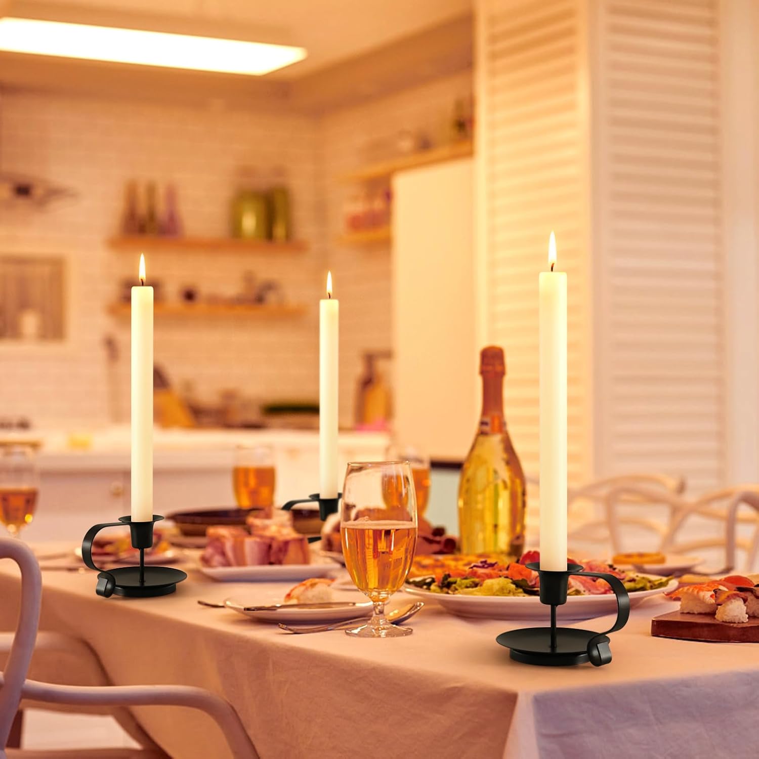 - Vintage Chamberstick Design – Inspired by antique candle holders, this black metal taper candle holder features a handle for easy carrying and a timeless farmhouse look