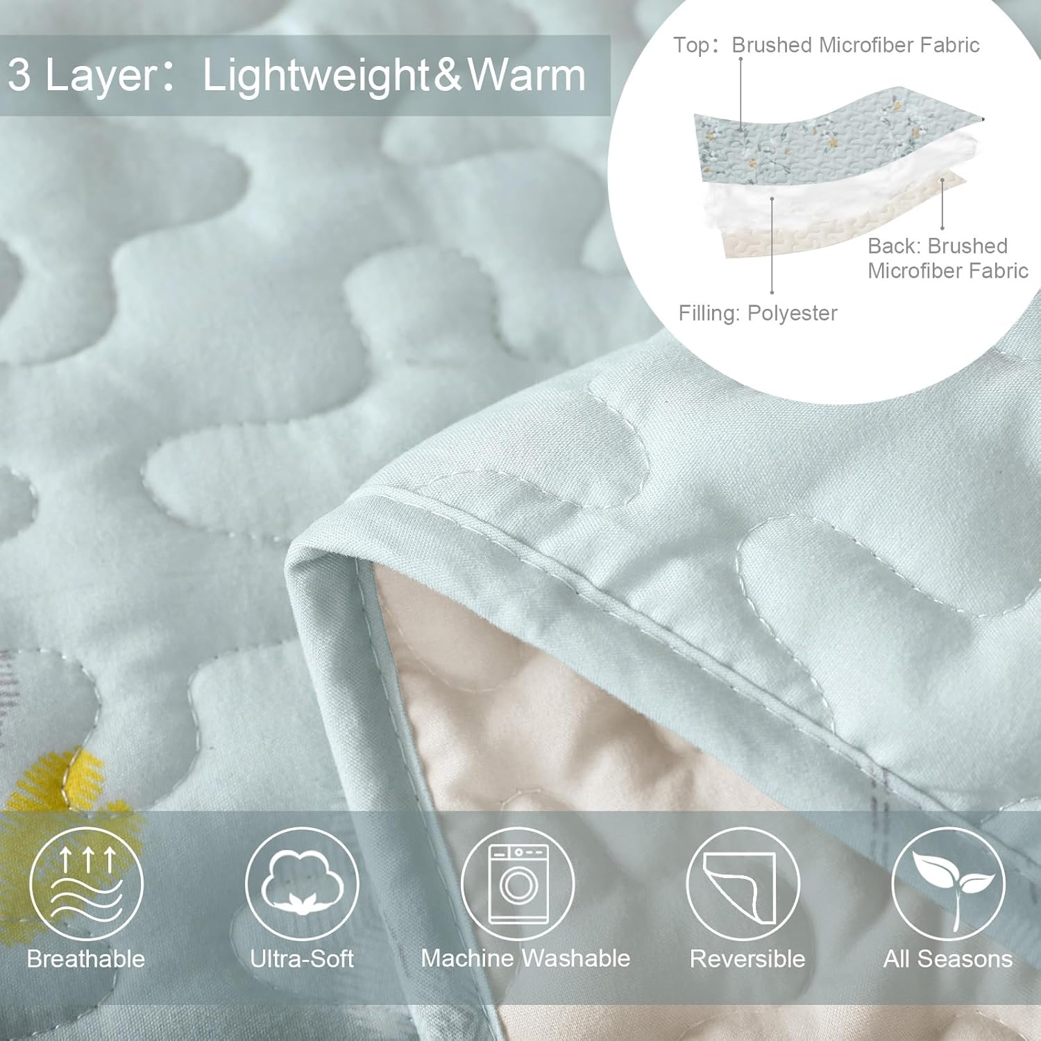 - Premium Material: The floral quilts sets are made of brushed microfiber and filled with polyester which make the quilt ultra-soft, breathable, silk touch, lightweight and suitable for all seasons