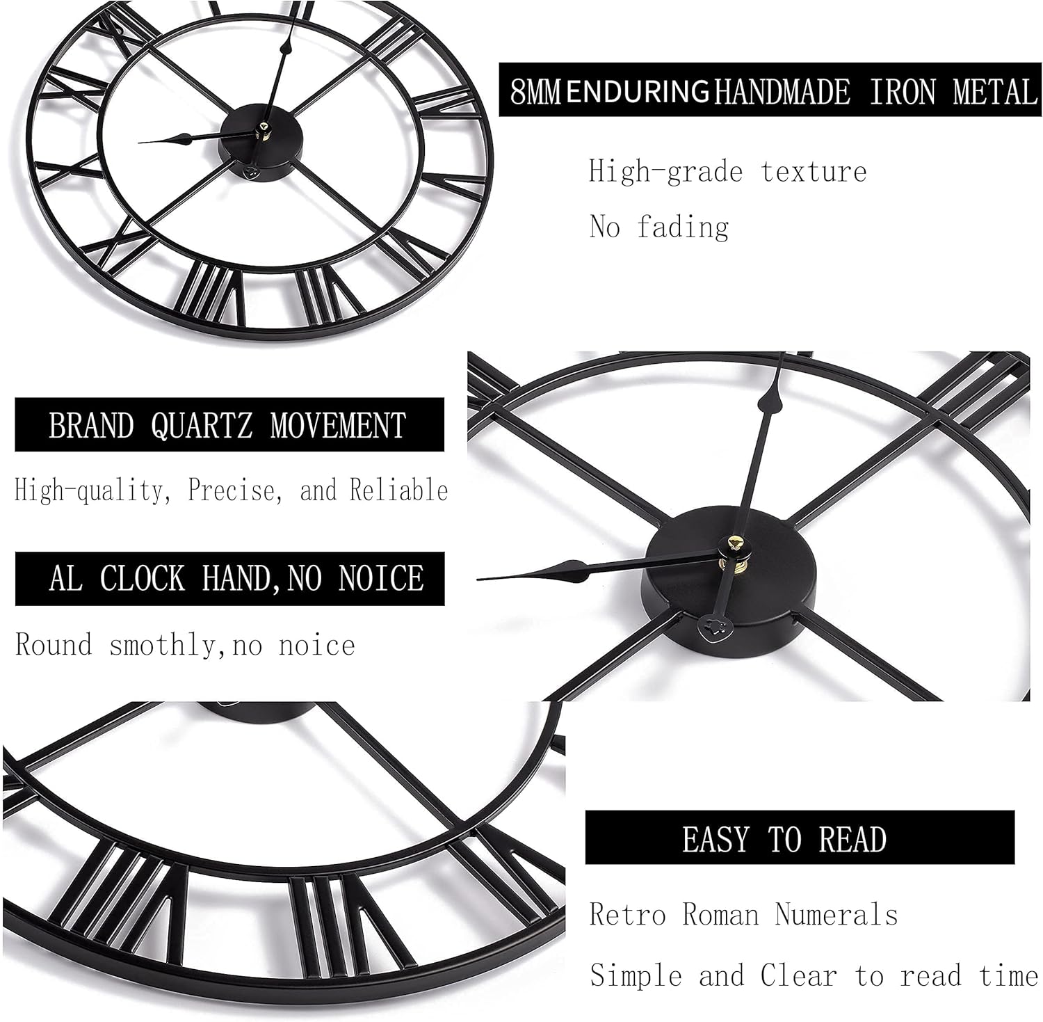 - 【Perfect Gift Idea/Guarantee】- Perfect gift for family, partners, and friends. It is also an ideal gift for birthdays, anniversaries, Christmas, Mother's Day, Father’s Day, and Halloween.The movement of these roman numerals wall clocks accept 6-months' replacement, if there is something wrong with your movement, please contact us in time.