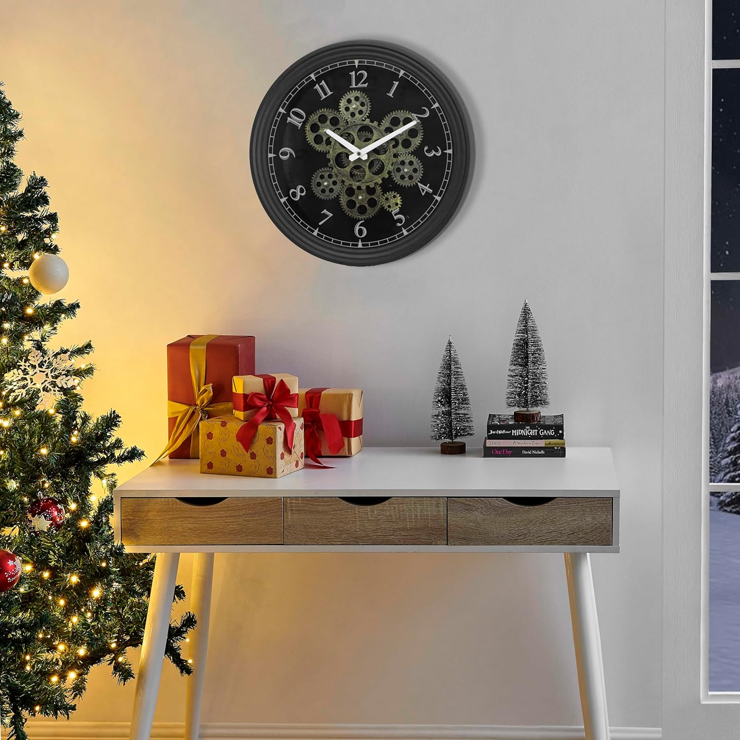 - [Ideal Unique Gift Idea] When moving into a new love home or seeking for a unique gift for your family or friends,this modern gear wall clock will be your good choice.It can be a great house warming gift,Mother's Day Gift,Father's Day Gift or Christmas Decoration Gifts
