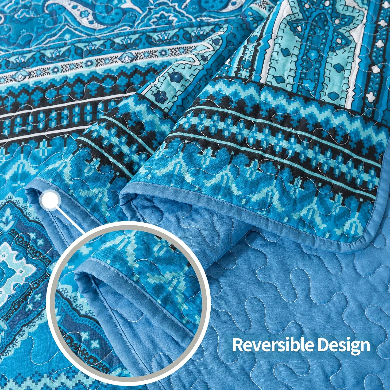 VAPUTAR Cotton Quilt Queen Size Bedding Set - 3 Pieces Queen Quilt Bedding Set, Boho Queen Size Quilts, Lightweight Reversible Coverlets Bedspreads for Farmhouse Bedroom (Blue)