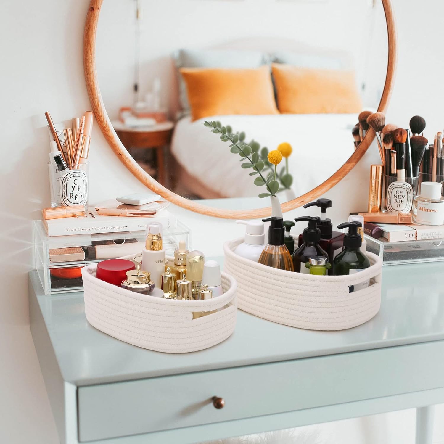 7 Piece Cotton Rope Woven Basket Set - Small Basket for Baby Nursery, Pets, Montessori, Dog & Cat Toy Boxes, Bathroom Organization Bins (White)
