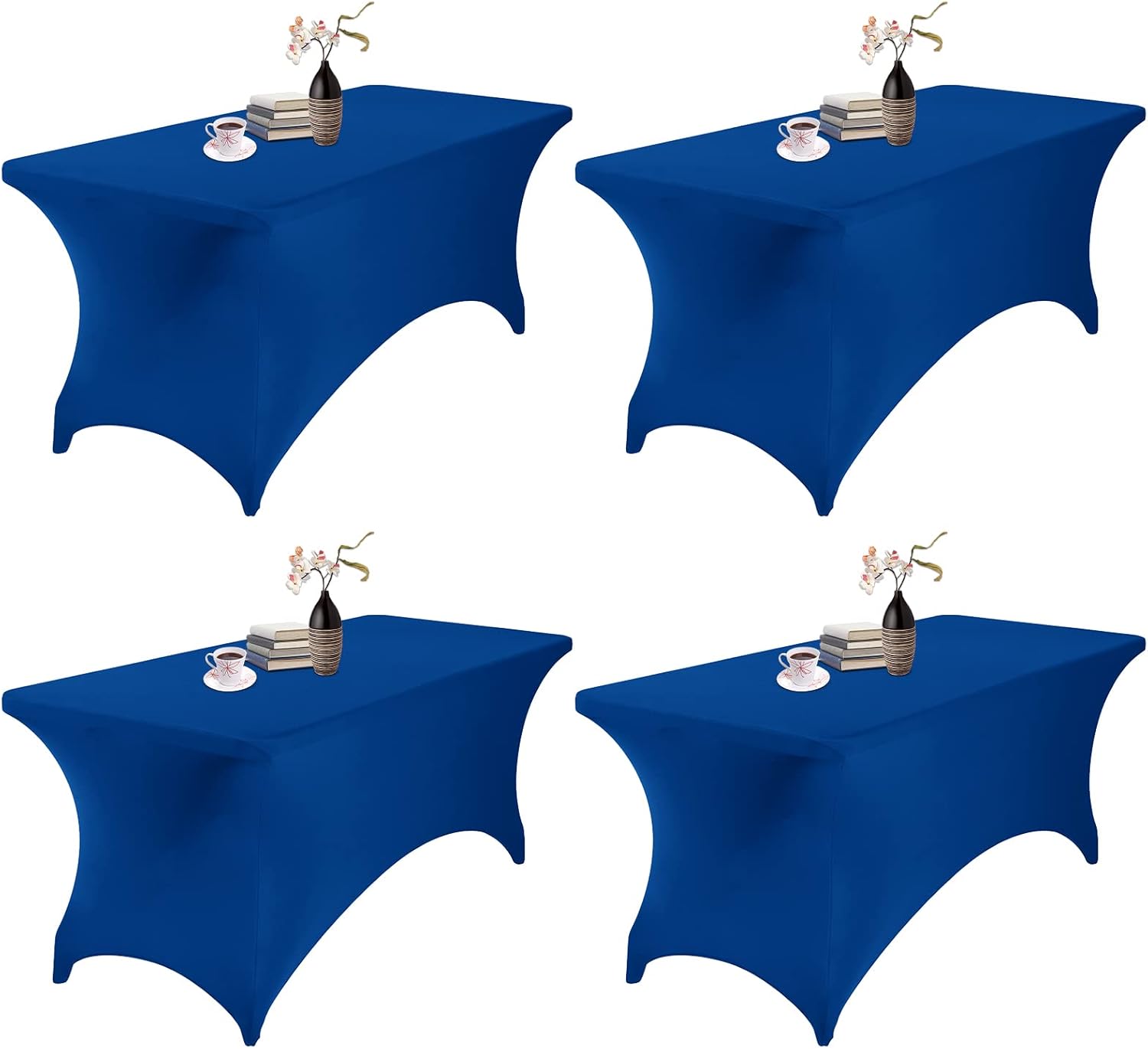 4Pack Spandex Waterproof Table Covers 6ft,Spandex 6ft Waterproof Table Cover for Party,Wedding, Banquet, and Events(Classicbule)