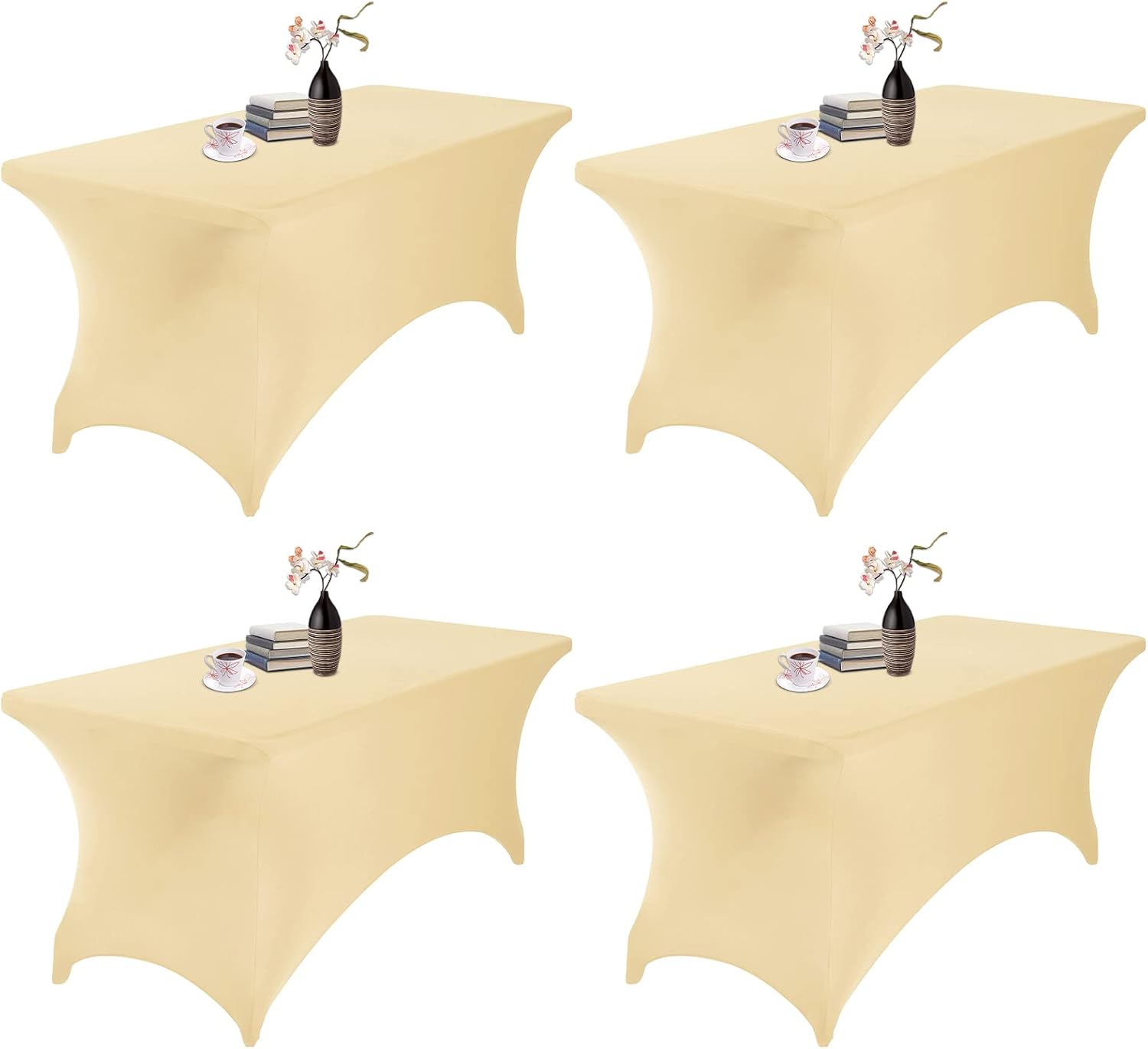 4Pack Spandex Waterproof Table Covers 6ft,Spandex 6ft Waterproof Table Cover for Party,Wedding, Banquet, and Events(Champagne)