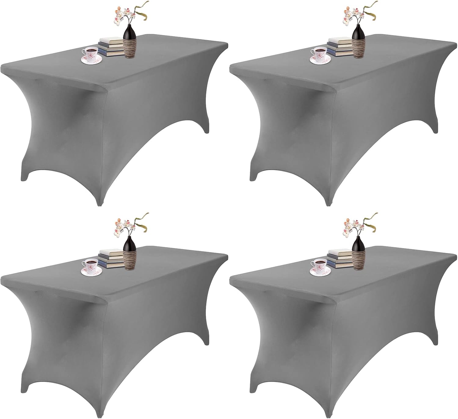 4Pack Spandex Waterproof Table Covers 6ft,Spandex 6ft Waterproof Table Cover for Party,Wedding, Banquet, and Events(Gary)