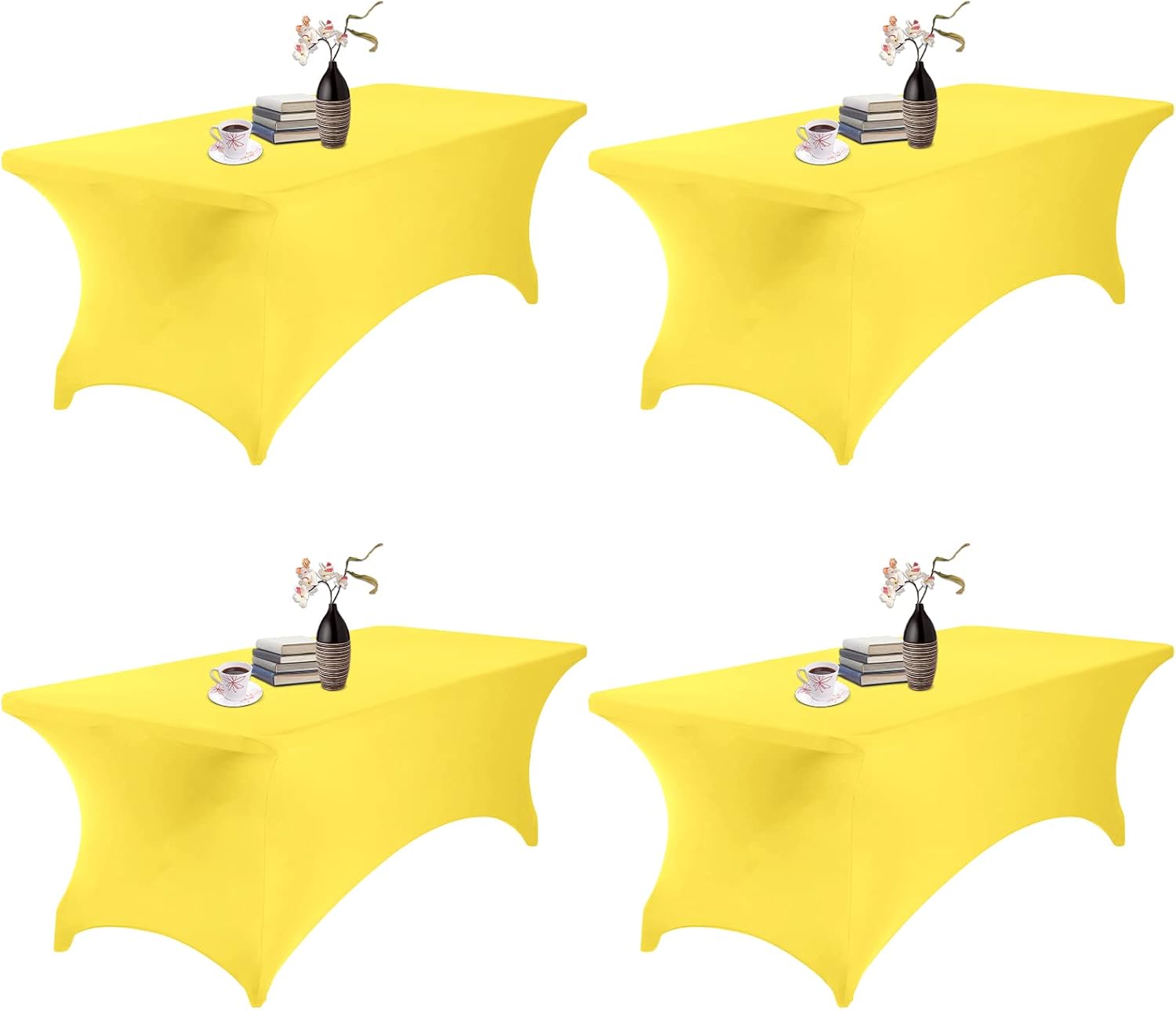 4Pack Spandex Waterproof Table Covers 8ft,Spandex 8ft Waterproof Table Cover for Party,Wedding, Banquet, and Events(Yellow)