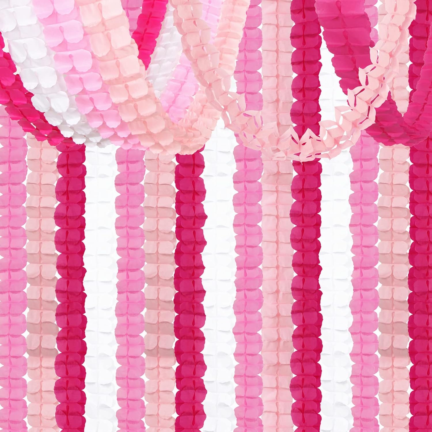 Rose-Red Pink-White Party-Decorations Streamers Garland - 157Ft Four-Leaf Clover Hanging Banner,Wedding Girl Birthday Baby Bridal Shower Engagement Bachelorette Decor Hugtmr