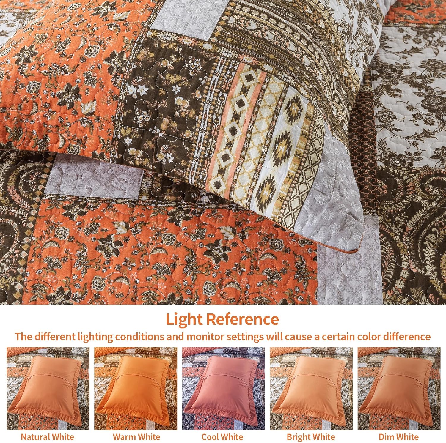 VAPUTAR Quilts King Size - Fall Cotton King Size Quilt Bedding Set, 3 Piece Lightweight Soft King Bedspreads Cotton Boho King Quilt Set, Floral Bedding Set for Farmhouse Bedroom (Dream Orange)