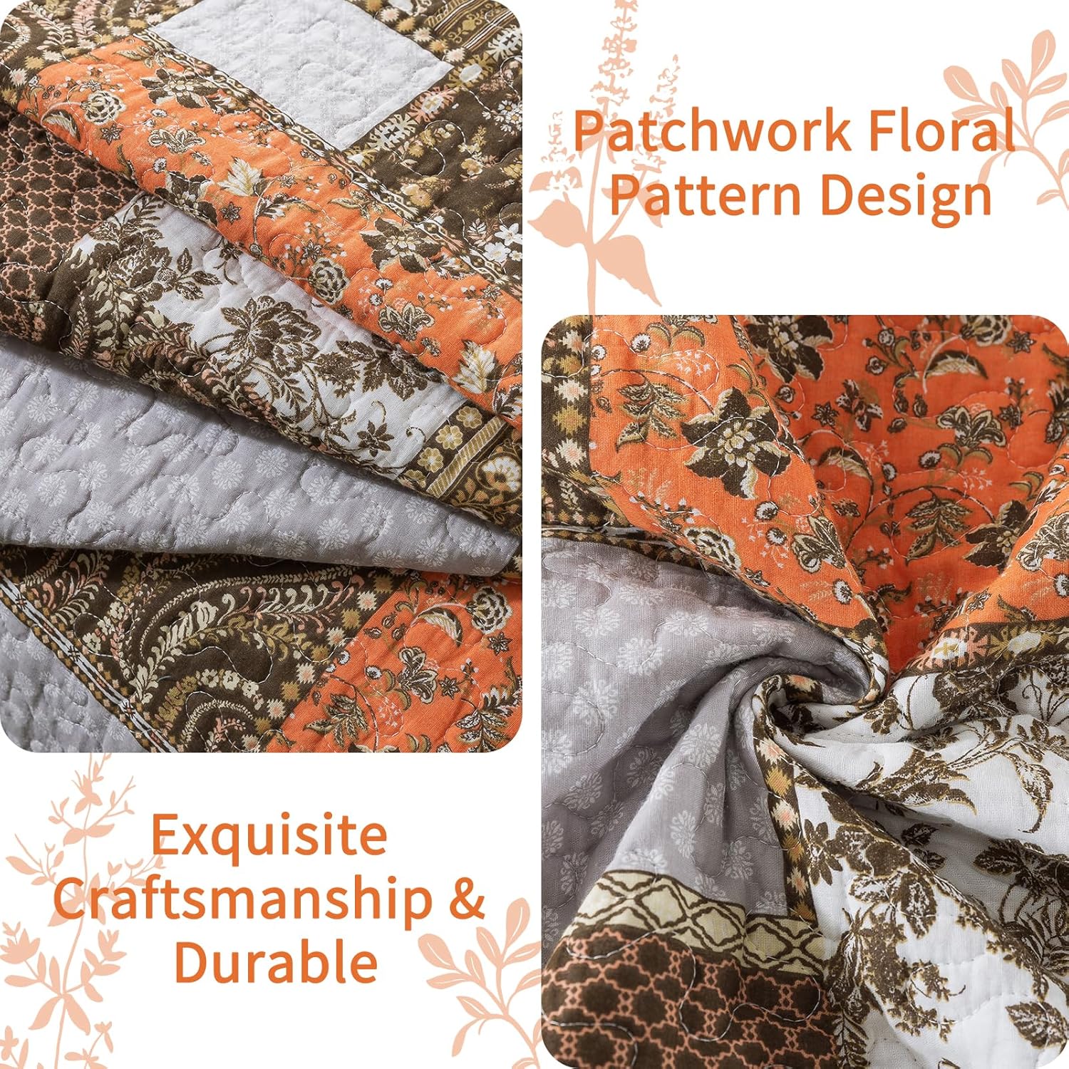 VAPUTAR Quilts Queen Size - Fall Cotton Quilt Set Quilted Bedspread Coverlet Lightweighet Bedding Set with Shams for All Season, 3 Piece Boho Patchwork Quitled Bedspread Queen Size (Dream Orange)