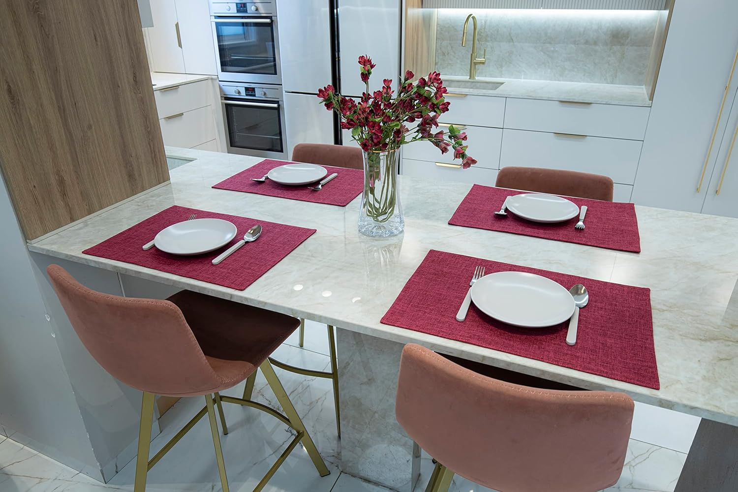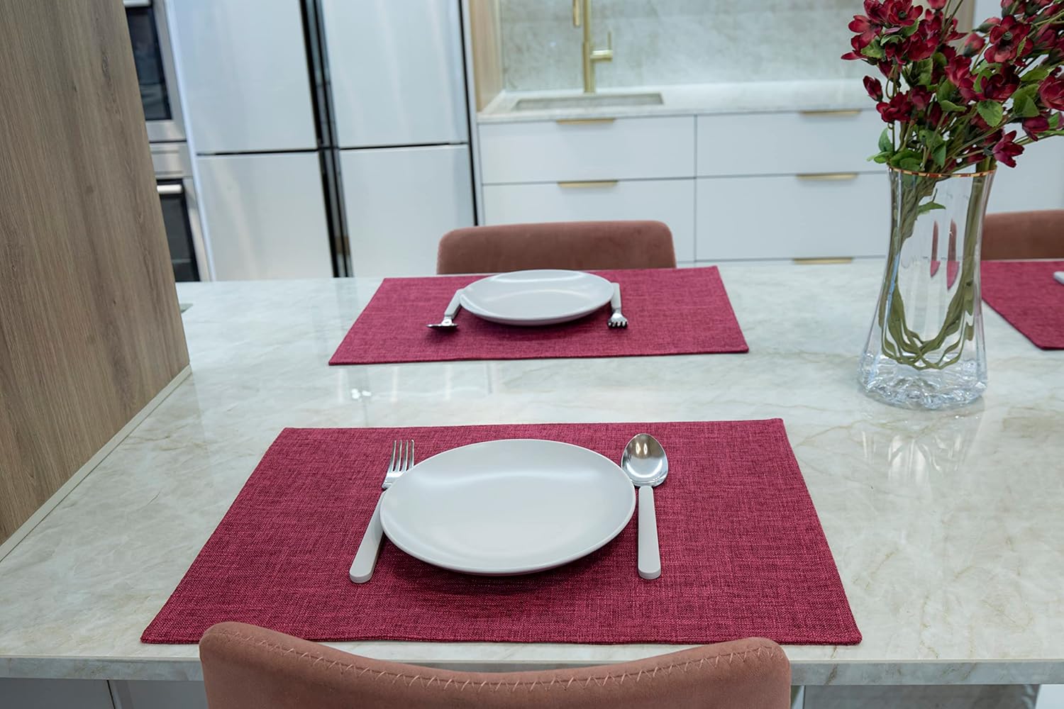 Placemat Set-Washable Place Mats for Parties-Elegant Table Mats for Kitchen Table, Set of 4 Dining Table Placemats-Heat-Resistant Cloth Placemats for Indoor and Outdoor,13x19-Burgundy Purple