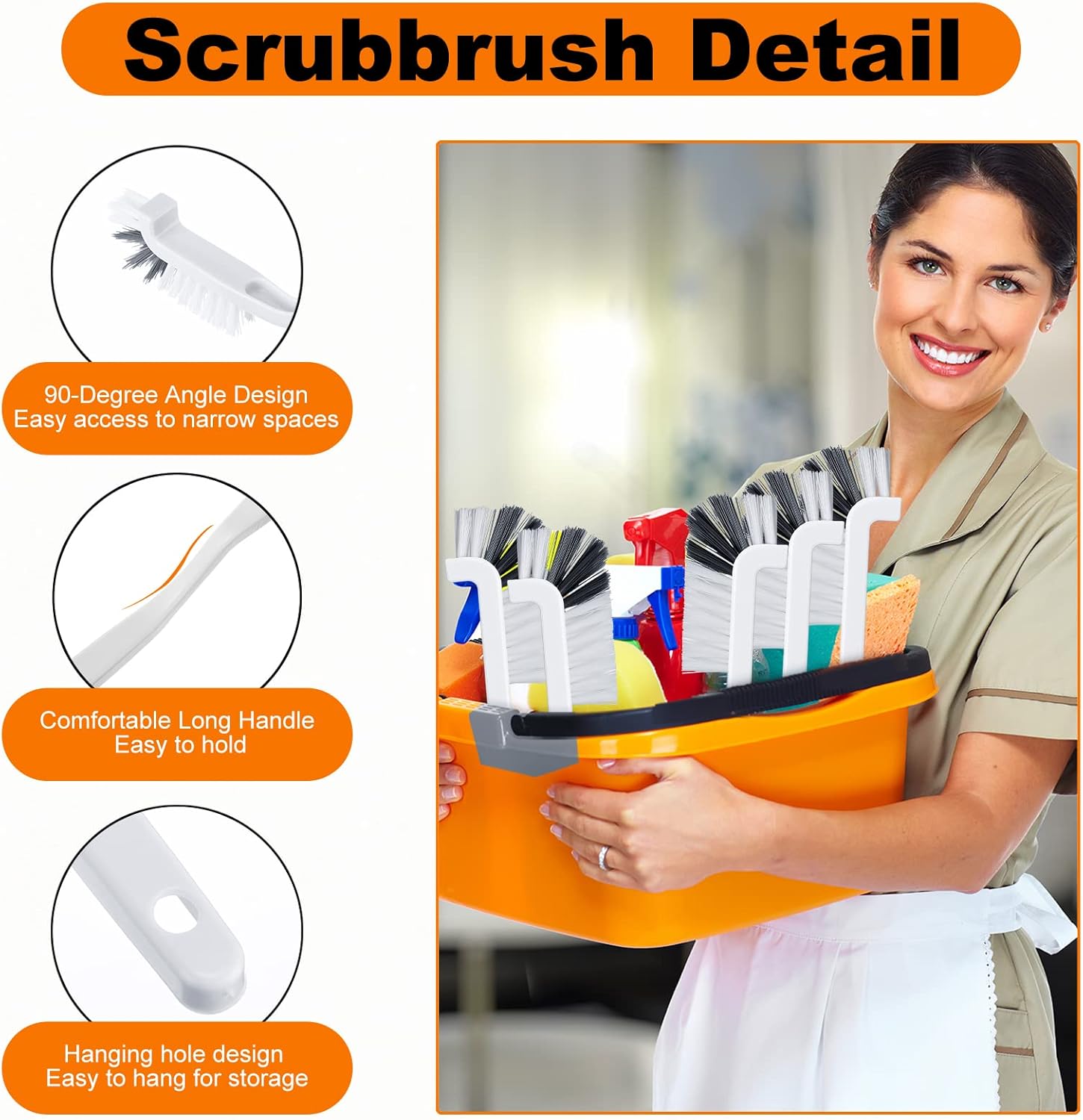 - 90-degree Angle Design: the cleaning brush adopts 90-degree angle bristles design, which can provide easy access to narrow spaces, effectively helping you clean areas that are difficult to clean or have stubborn stains