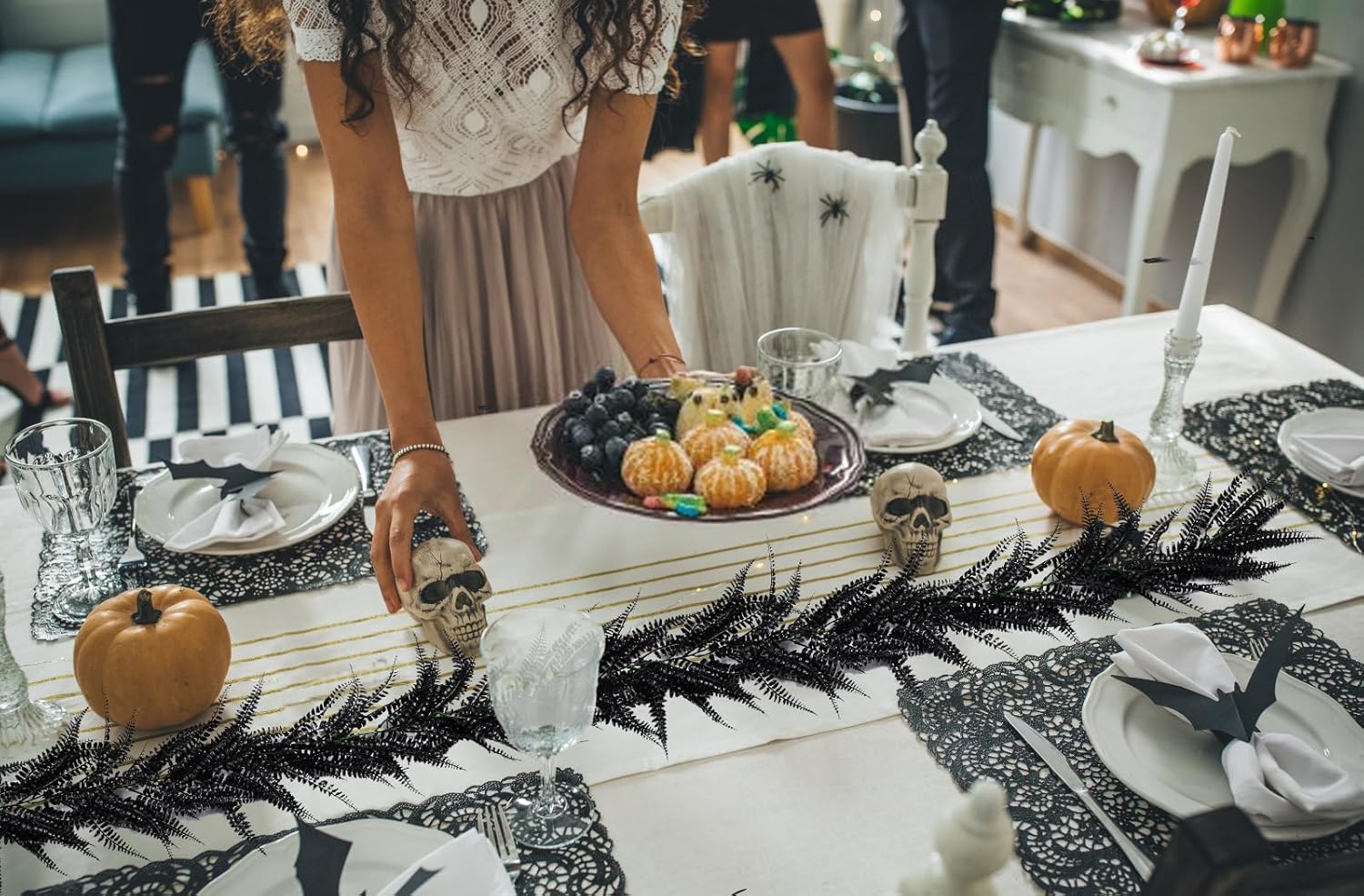 - 【Halloween Party Decoration】Black boston fern garland represent mystery, creating a mysterious atmosphere for your fall Halloween themed party. Black garland can also be used to decorate balconies, fireplaces, dining tables, door frames, door frames, stairs, railings, etc