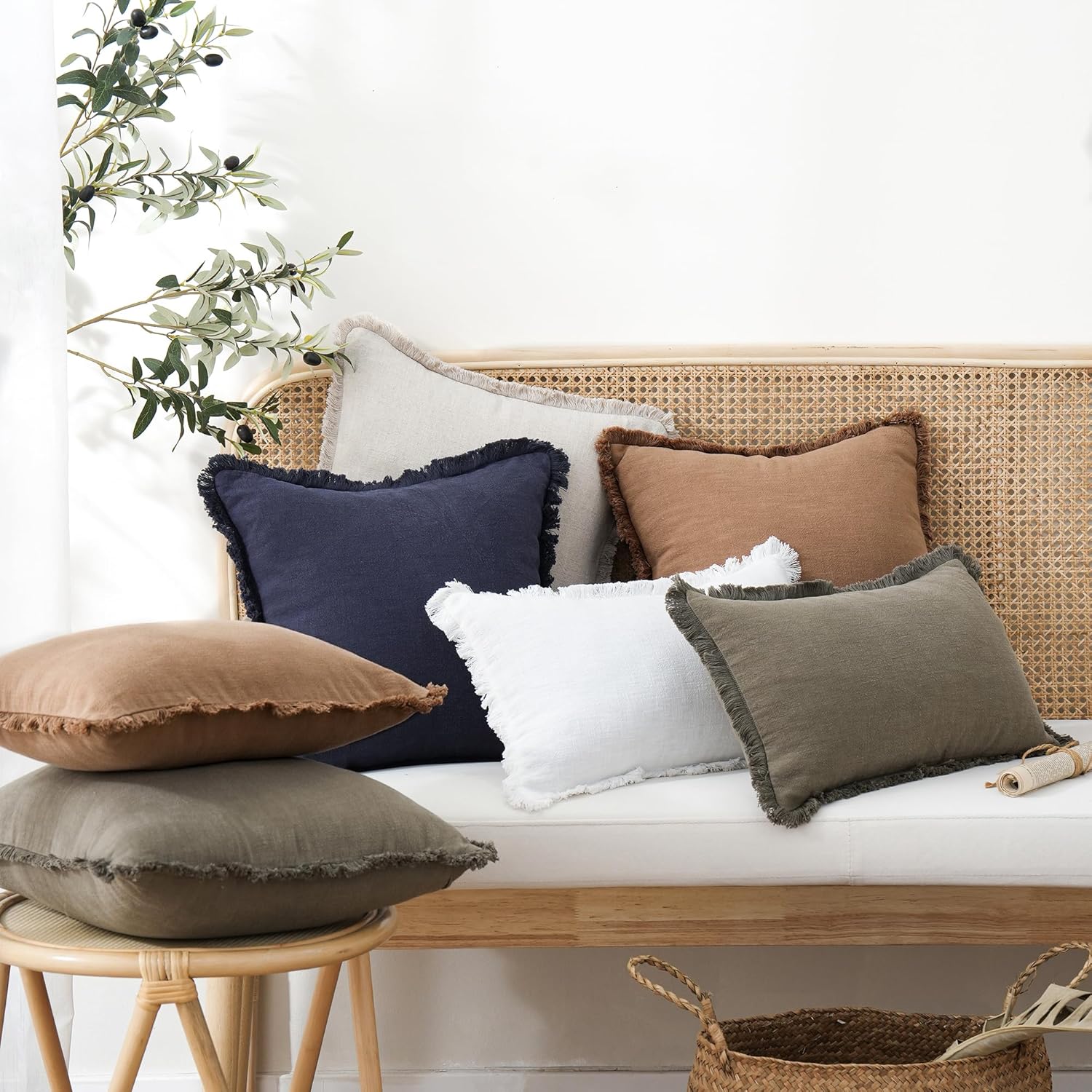 - 【Soft & Cozy】Luxuriously soft, our natural ramie pillows add an elevated yet inviting touch to the room. Soft and cool-to-the-touch, it's a styling essential that feels right at home as an everyday favorite. They will continue to get softer and more lived-in with every wash.