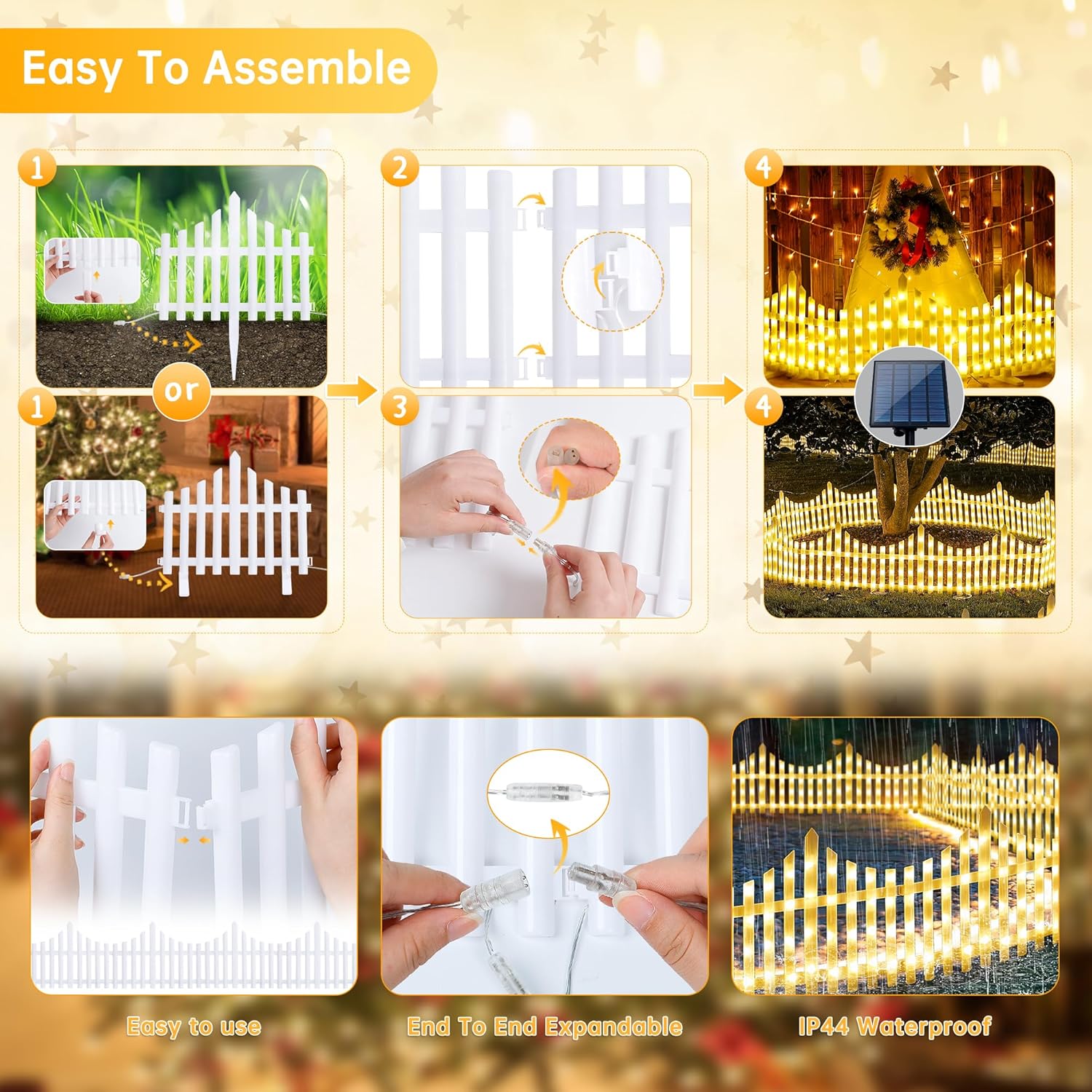 - ✨【Easy Installation&DIY】There is end to end plug and snap-fit design on both sides of each panel,no need to dig or use tools,it is pretty convenient to assemble and disassemble.Flexible border pieces can be created into any shape or length you'd like.Enjoy the beautiful bright fence Christmas lights!