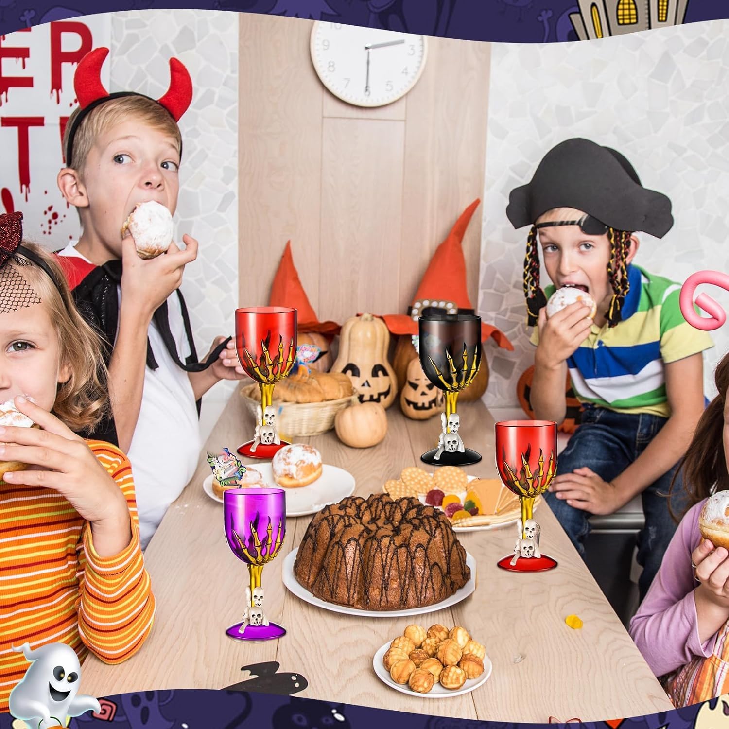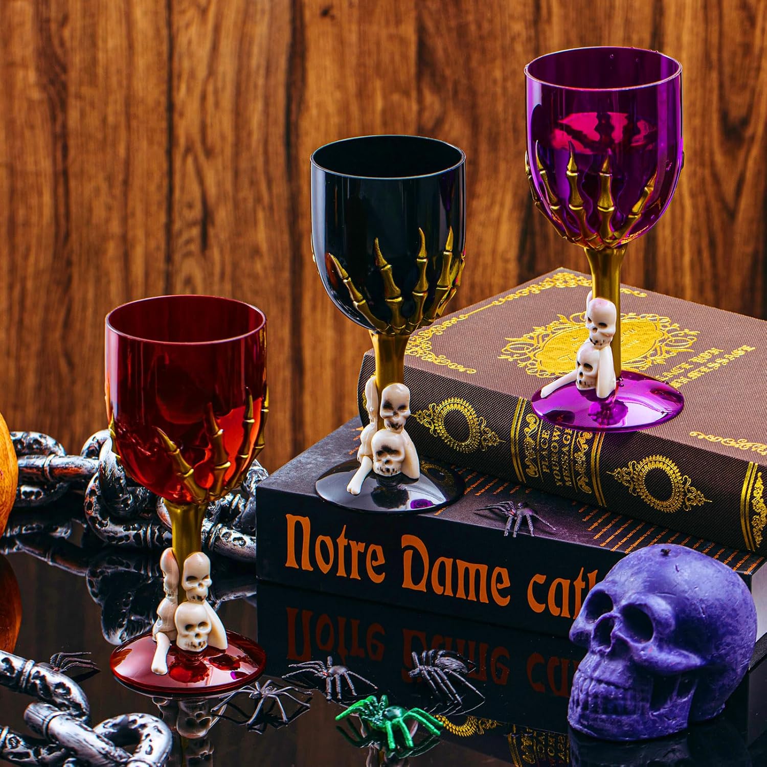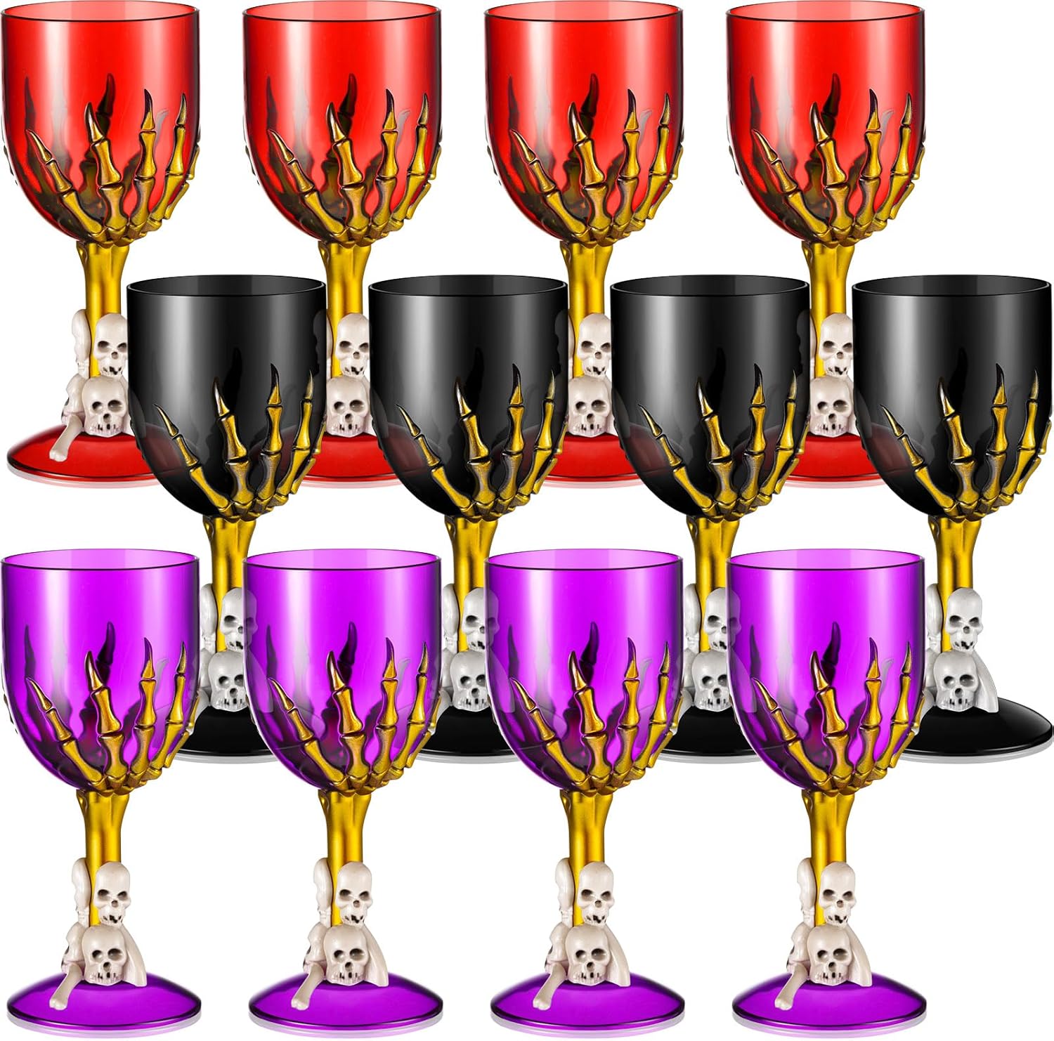 - Spooky and Scary Design: the Halloween plastic wine glasses are equipped with skull hand and skeleton head, which are funny and creative, spooky and creepy; Whether you are holding a Halloween party or on normal days, these cups are attractive and appealing, making your party a success