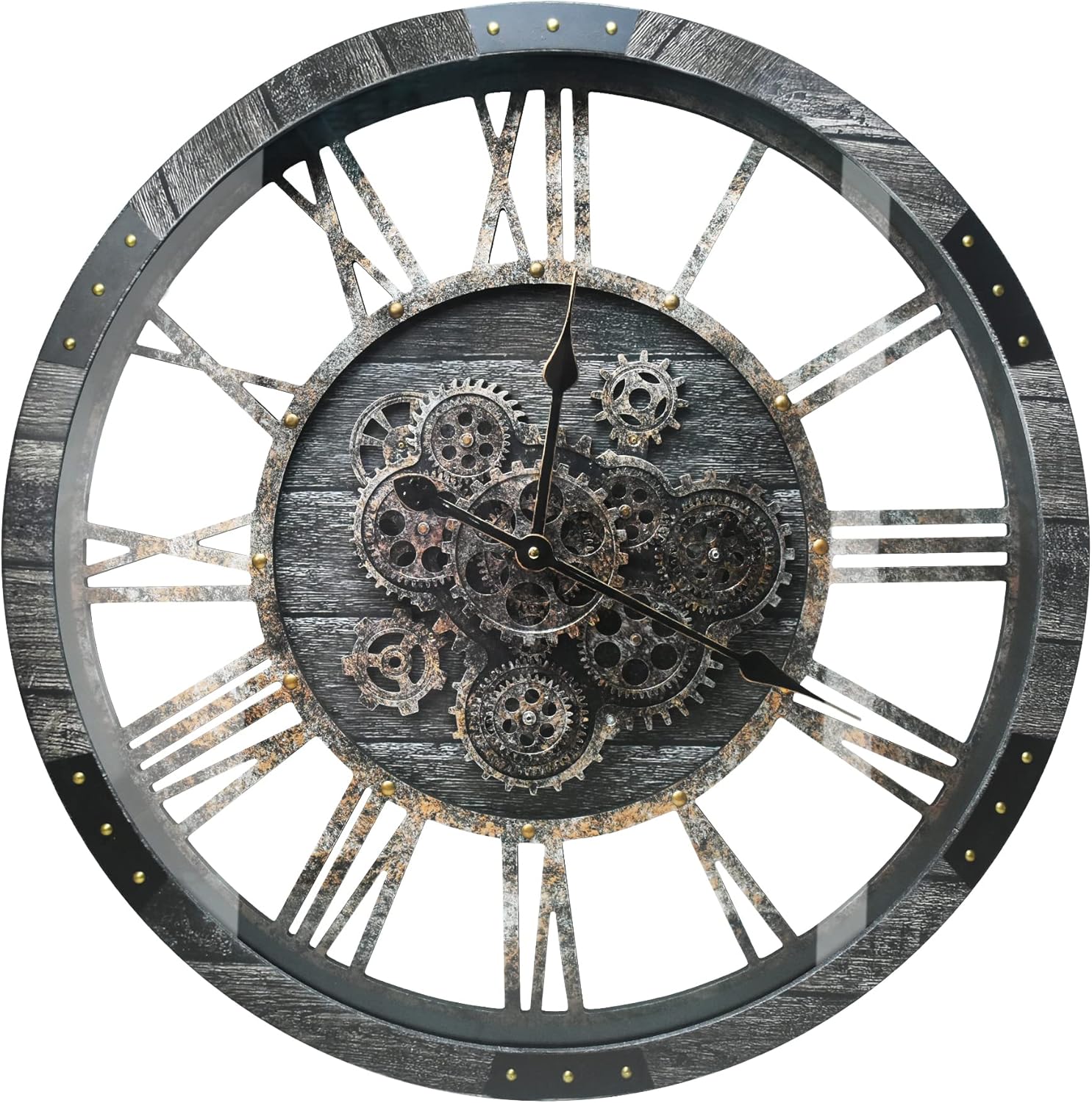 DORBOKER 40" Original Moving Gears Wall Clock, Large Industrial Wall Clock for Living Room Decor,Oversized Wood Vintage Farmhouse Steampunk Rustic Clocks for Wall Decor,Carbon Gray