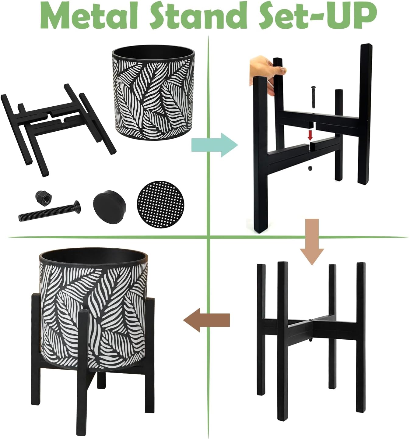 - TROPICAL AMBIANCE: The palm leaf print adorning these flowerpots exudes a sense of tropical charm, instantly elevating the ambiance of your living spaces. Create a serene garden sanctuary on your patio, a lush indoor oasis in your living room, or a tropical corner on your balcony with these stunning pots and stands.