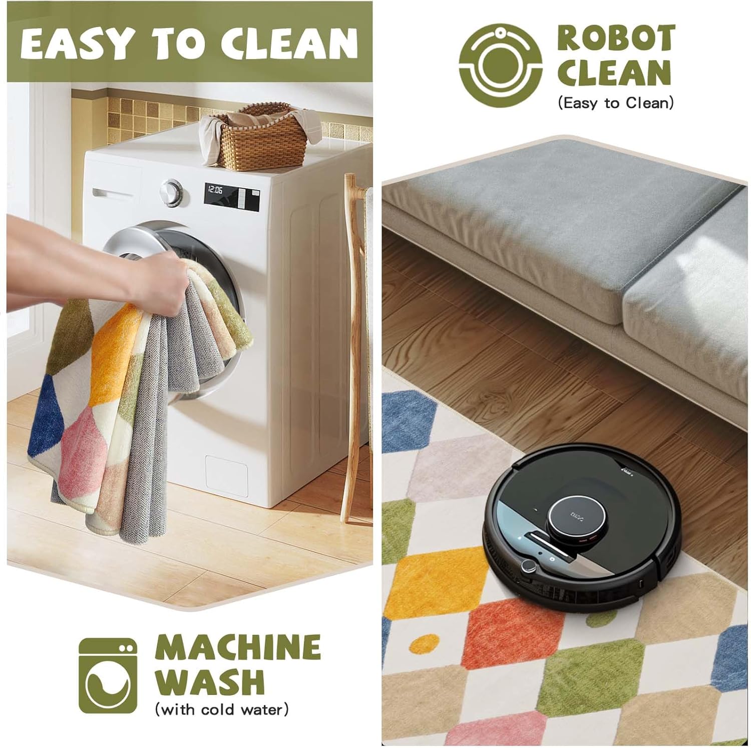 - Machine Washable: Designed with convenience in mind, our bedroom rug is machine washable, allowing for easy cleaning and maintenance. Also suitable for daily cleaning with a vacuum cleaner, broom, or mop. Easy to keep a new looking
