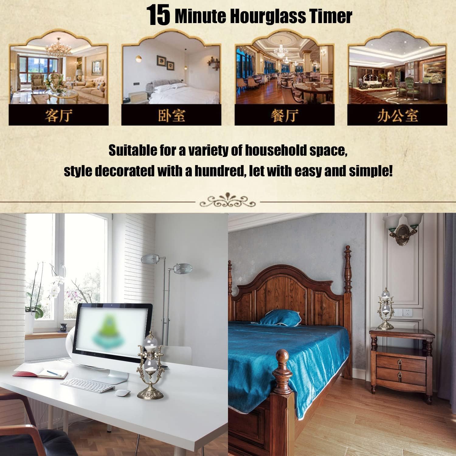 - ●[Gifts and Home Decoration] 15 Minute Sand Timer is designed in a classic vintage style, the hourglass timer is perfect for kitchen, office, study room decorations, hourglass timer is also a meaningful gift for your family and friends, it's perfect for your favorite metal hourglass timer collectors! Metal sand timer lovers as a gift, it must be very surprised and loved to receive it.