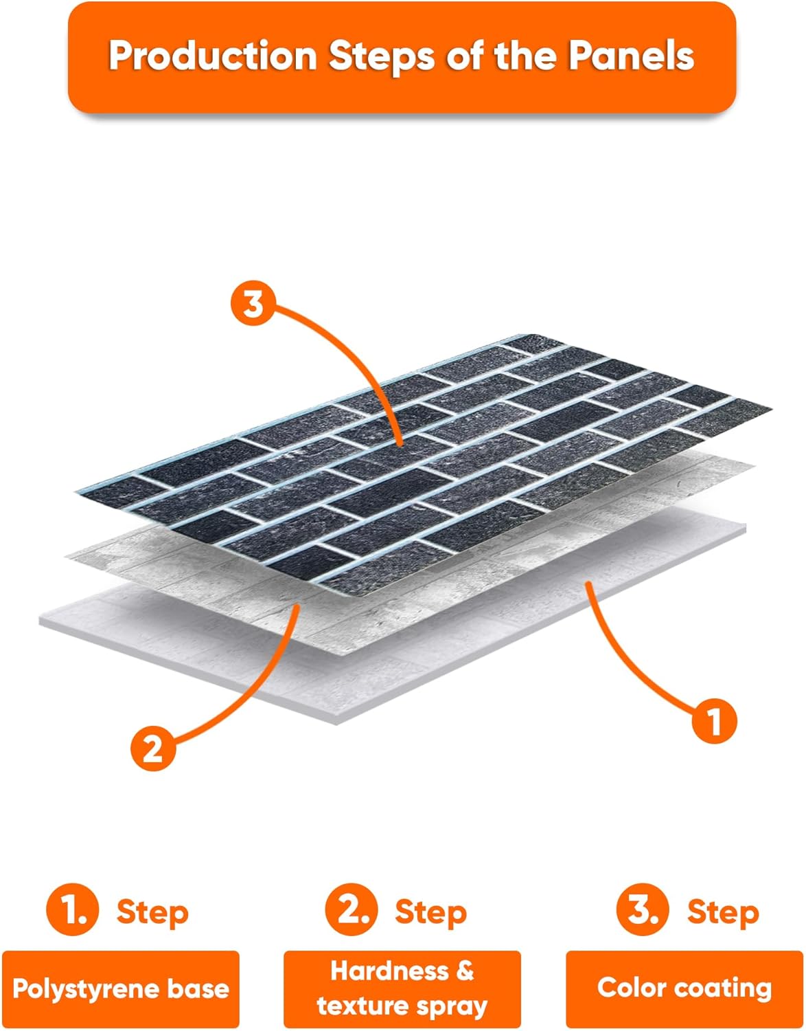 IZODEKOR 3D Brick Effect Wall Panels - Faux Brick Paneling for Living Room, Kitchen, Bathroom and More | Ash Smoke - Pack of 3, Covers 16 sq ft