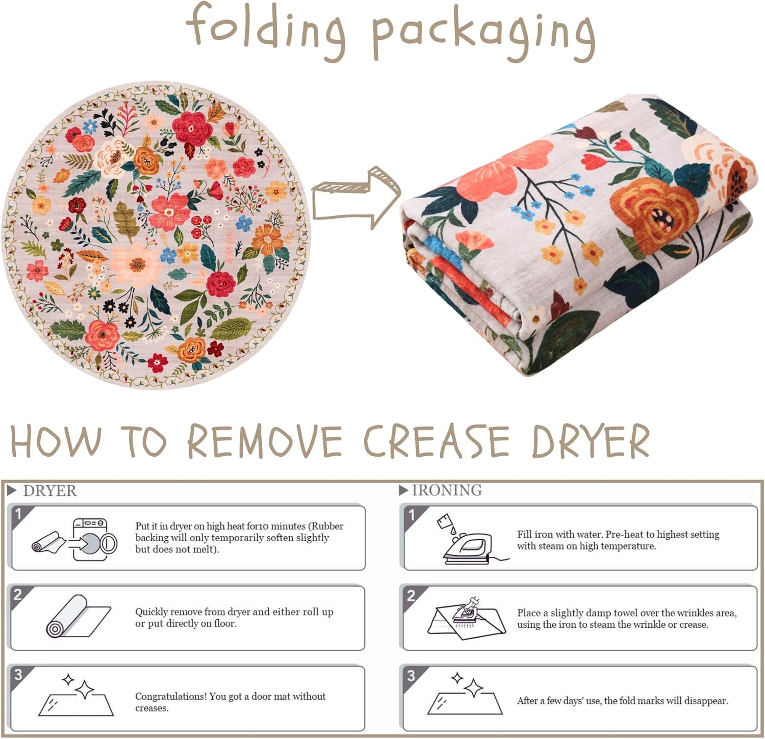 Round Rug 6ft Washable Circle Rug Non Slip Low Pile Boho Floral Small Circular Rug for Bedroom, Bathroom, Entryway, Kids Room, Office, College Dorm(Beige)