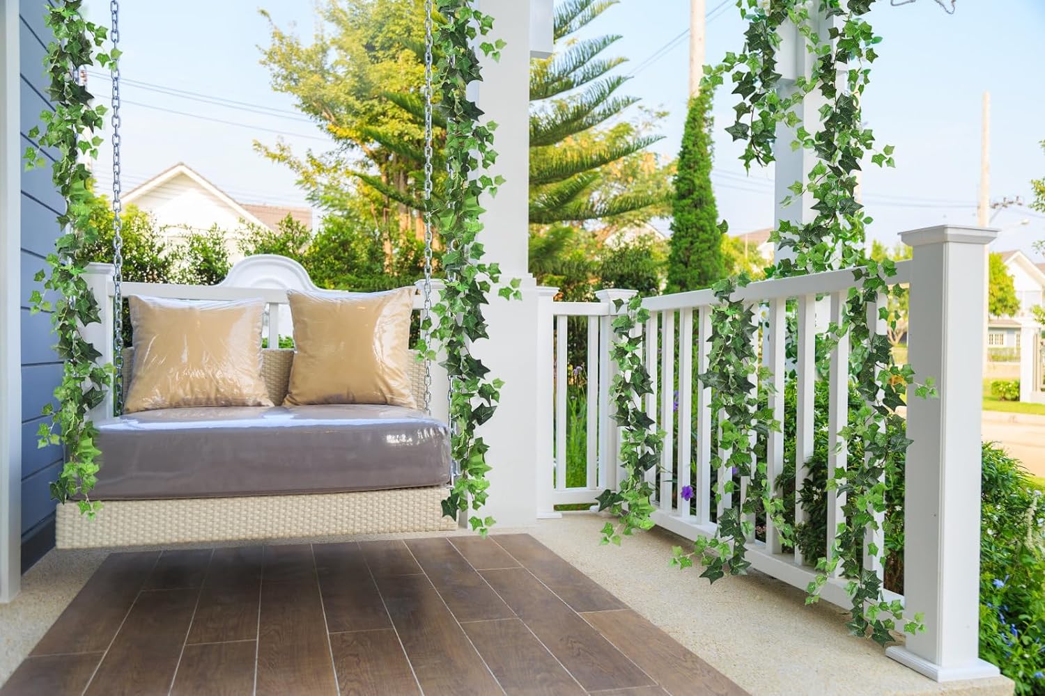 - 🍃【Widely Used】Faux ivy is very suitable for decorating living rooms, windows, walls, pipes, doors, mirrors, railings, fences, stairs, etc. Ivy can also decorate your wedding, spring/summer home, birthday parties, holiday parties, etc., adding a touch of natural atmosphere and beauty to indoor and outdoor decoration.