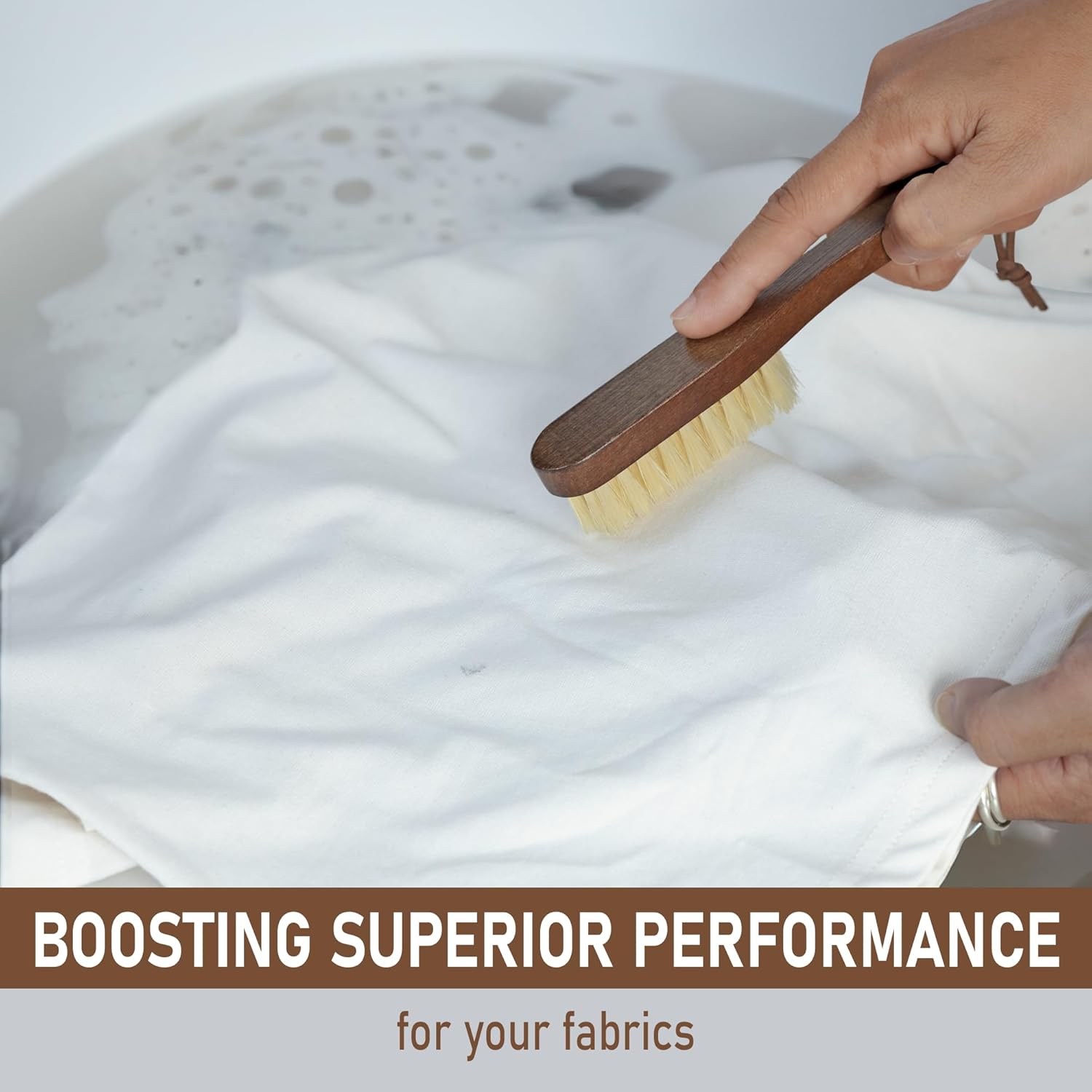 - Natural white boar bristles: Ideal for light-colored fabrics! These firm-yet-gentle natural boar bristles provide effective scrubbing power against grime but are less abrasive than harsh synthetics, minimizing damage to weaves like cotton, linen, denim, and blends