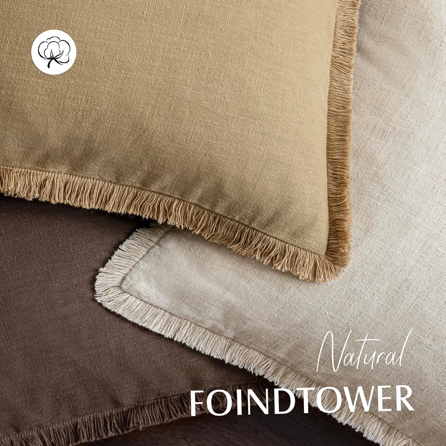 Foindtower Set of 2 Decorative Linen Fringe Throw Pillow Covers Farmhouse Cushion Cover with Tassels Soft Accent Pillowcase for Couch Chair Sofa Bed Living Room Home Decor,18×18 Inch,Light Khaki Taupe