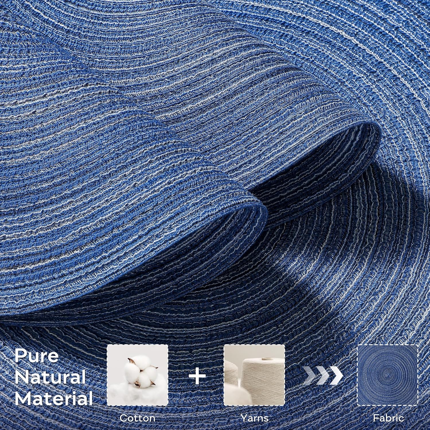 Leetaltree Round Placemats Heat and Slip Resistant Cotton Table Mats, Washable Bohemian Placemats for Dining Tables (Denim Blue, Set of 4)