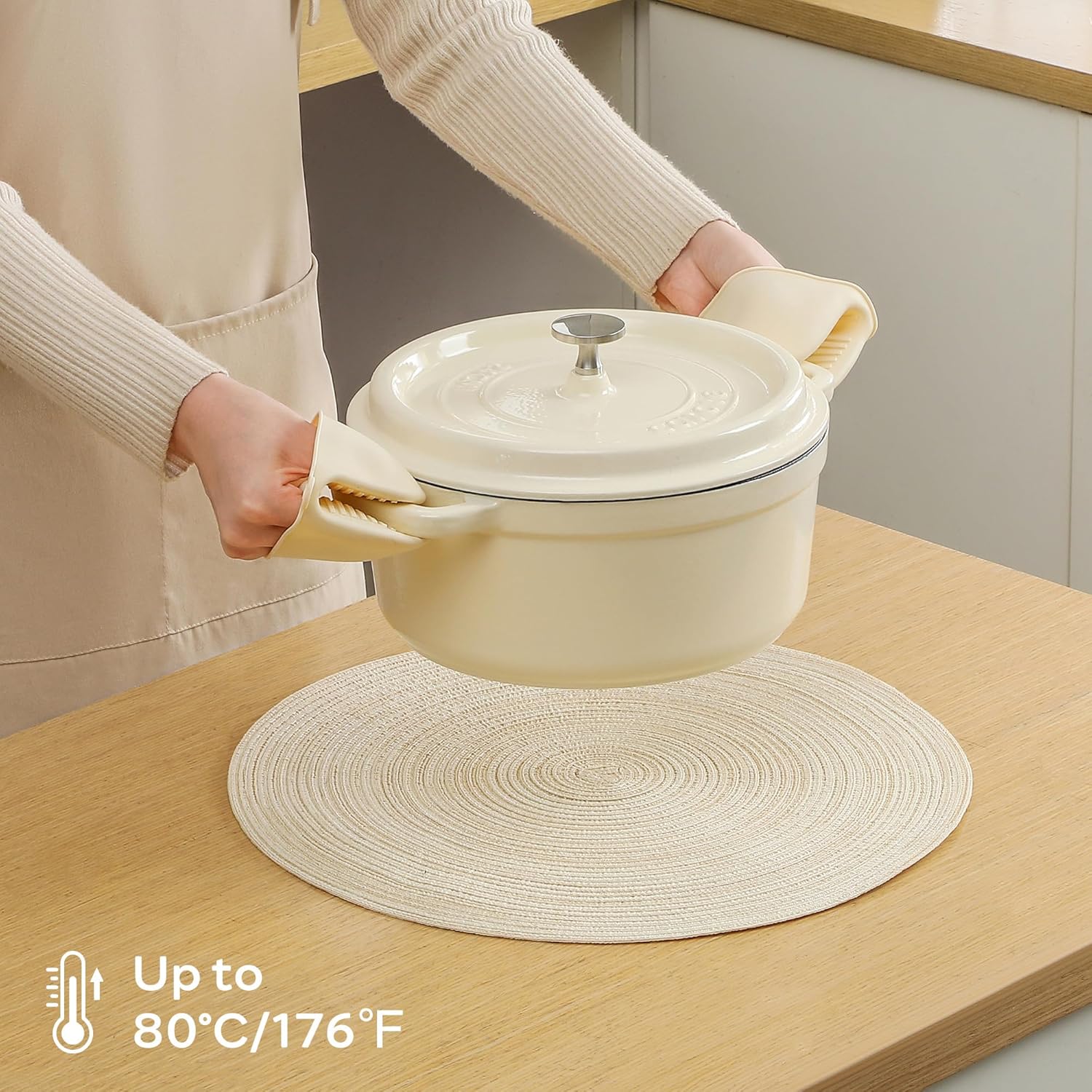 - Protect Your Dining Table: Our placemats can withstand temperatures up to 176°F (80°C), protecting your table from stains, hot food, or scratches from tableware. With a diameter of 15 inches, they perfectly fit a variety of tableware
