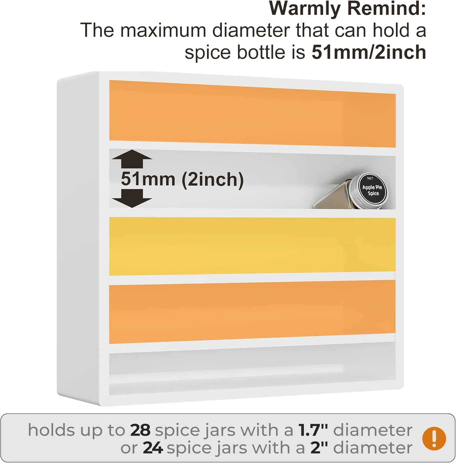 - Warmly Remind: The maximum diameter that can hold a spice bottle is 51mm/2inch.