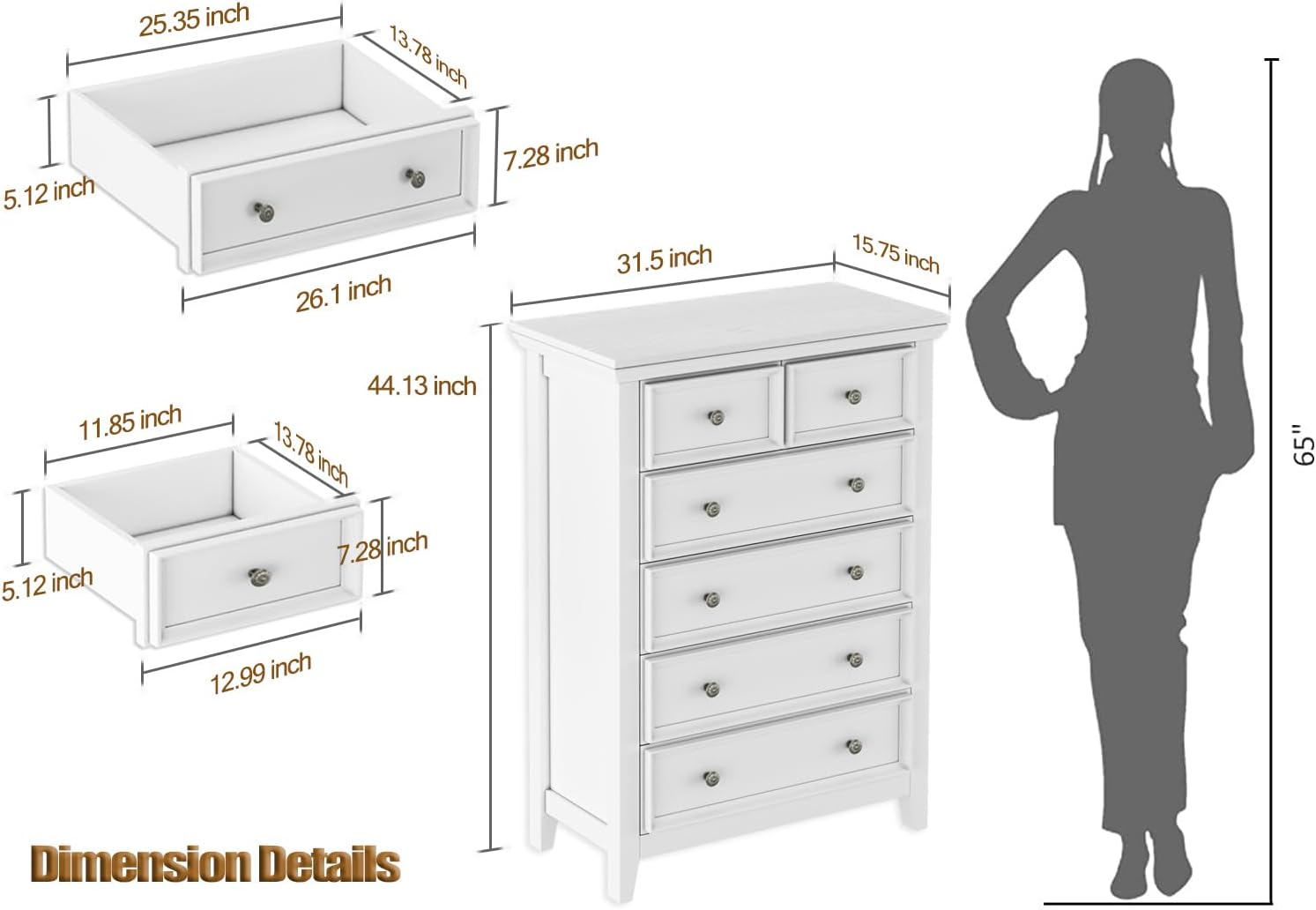 BLANKSPACE White Farmhouse Dresser, 6 Chest Drawer Dresser for Bedroom, Large Capacity Nightstand, Modern Tall Wood Cabinet for Bedroom, Living Room, Closets, Hallway