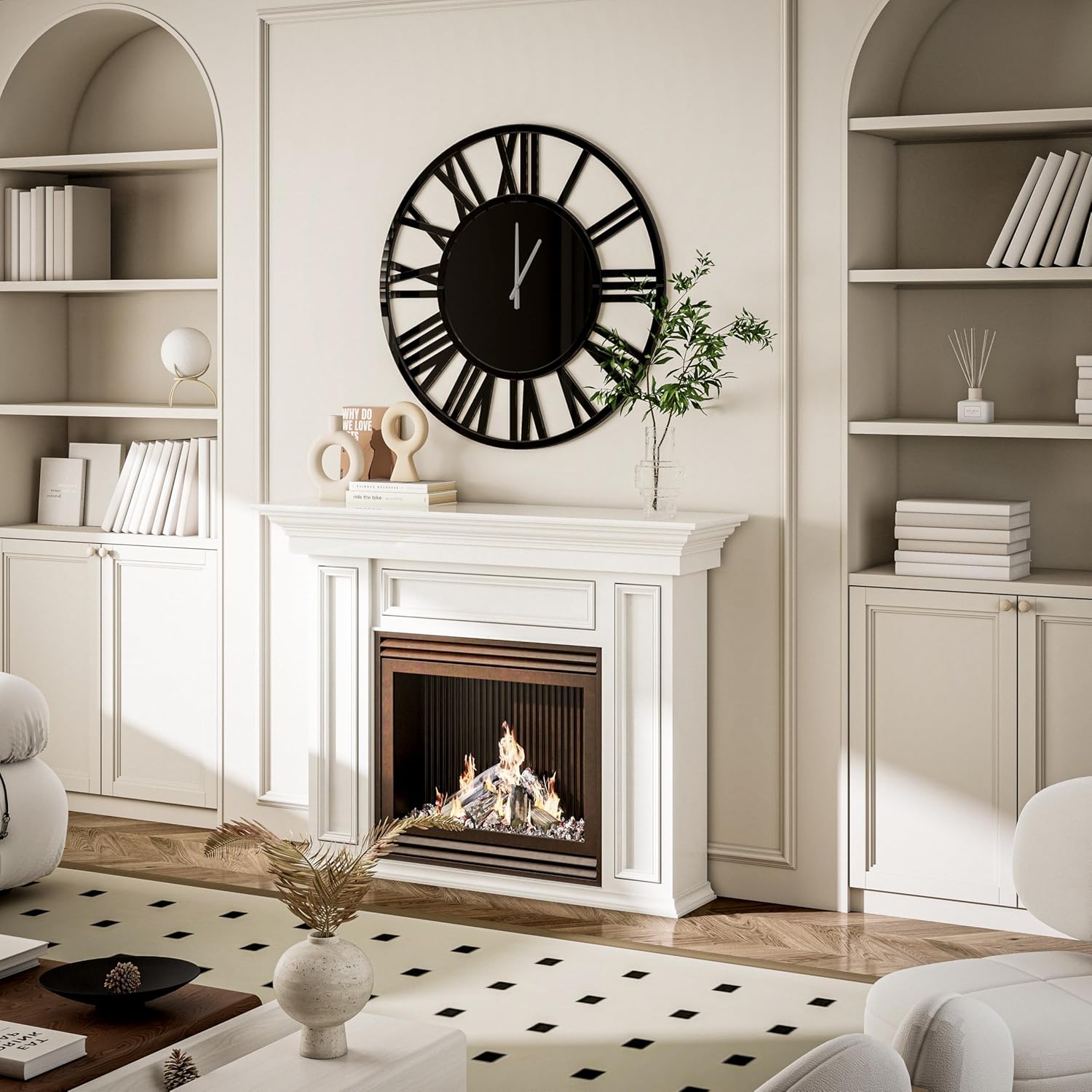SHYFOY Large Wall Clock - 31.5" Modern Black Wall Clock with Roman Numerals, Decorative Wall Clocks for Living Room, Bedroom, Office - Easy to Hang, Silent Non-Ticking