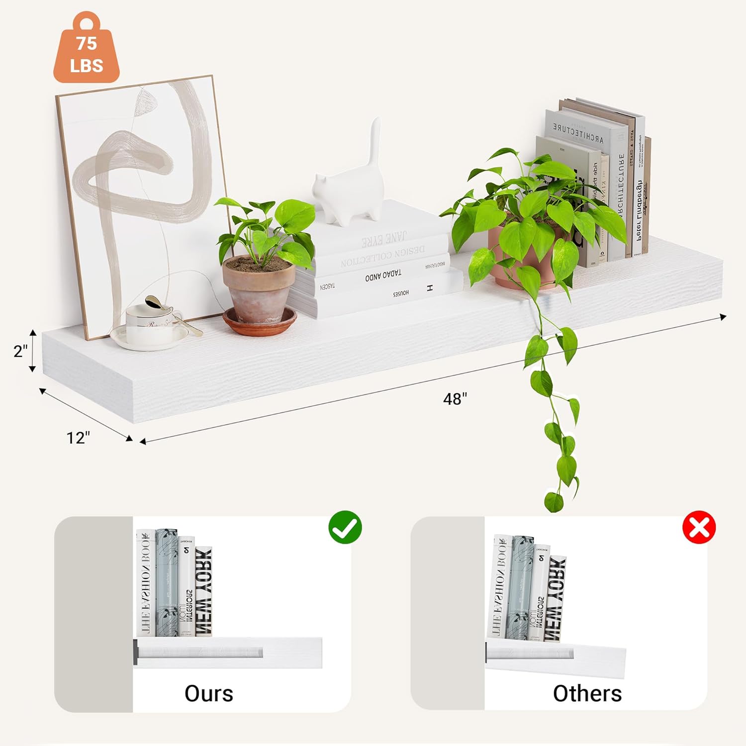 - Sturdy and Effortless Assembly- Includes all necessary hardware to make these floating shelves easy to assemble. We also provide you with detailed install instructions for you to install the shelves in a few minutes.