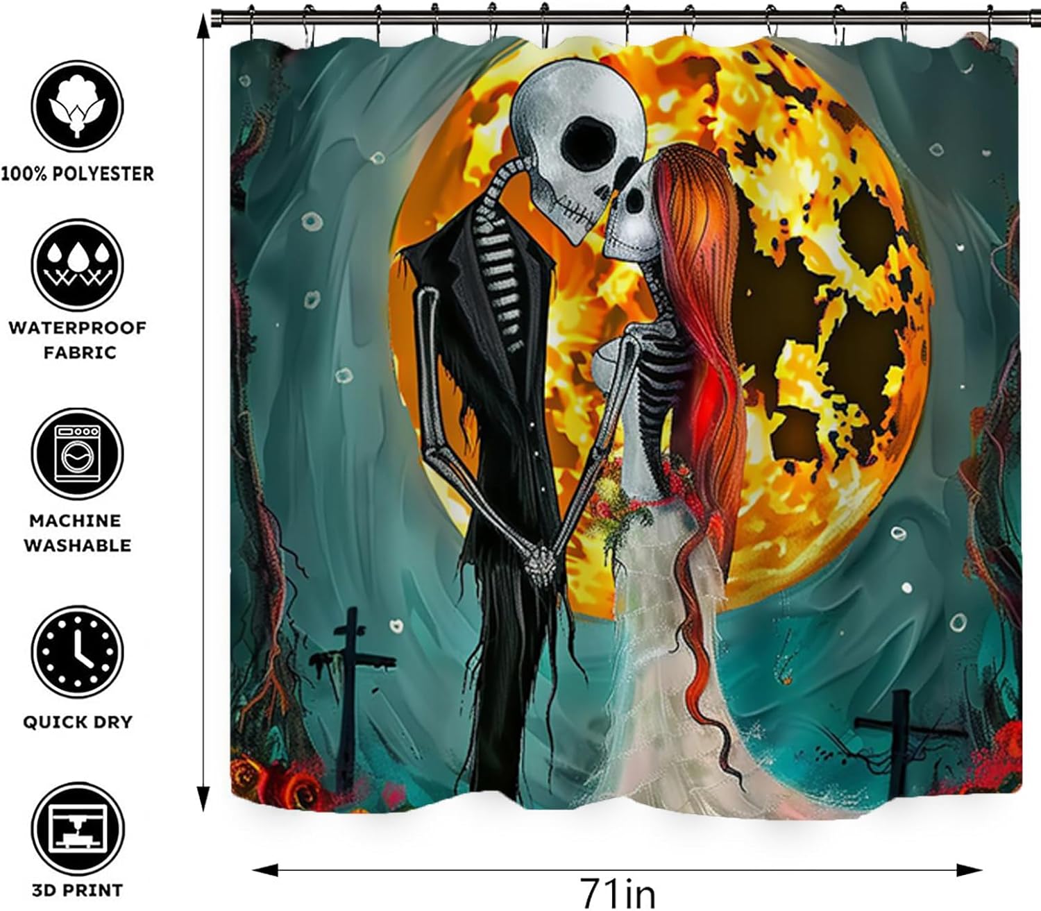 - 🛀 【 Easy to install and Washable】Durable halloween bathroom decor accessory sets with 12 pcs rustproof metal gromments and free strong hanging rings come for you to install easily; The nightmare before christmas bathroom was hand wash or machine wash in cold water Do not bleach ,iron or tumble dry