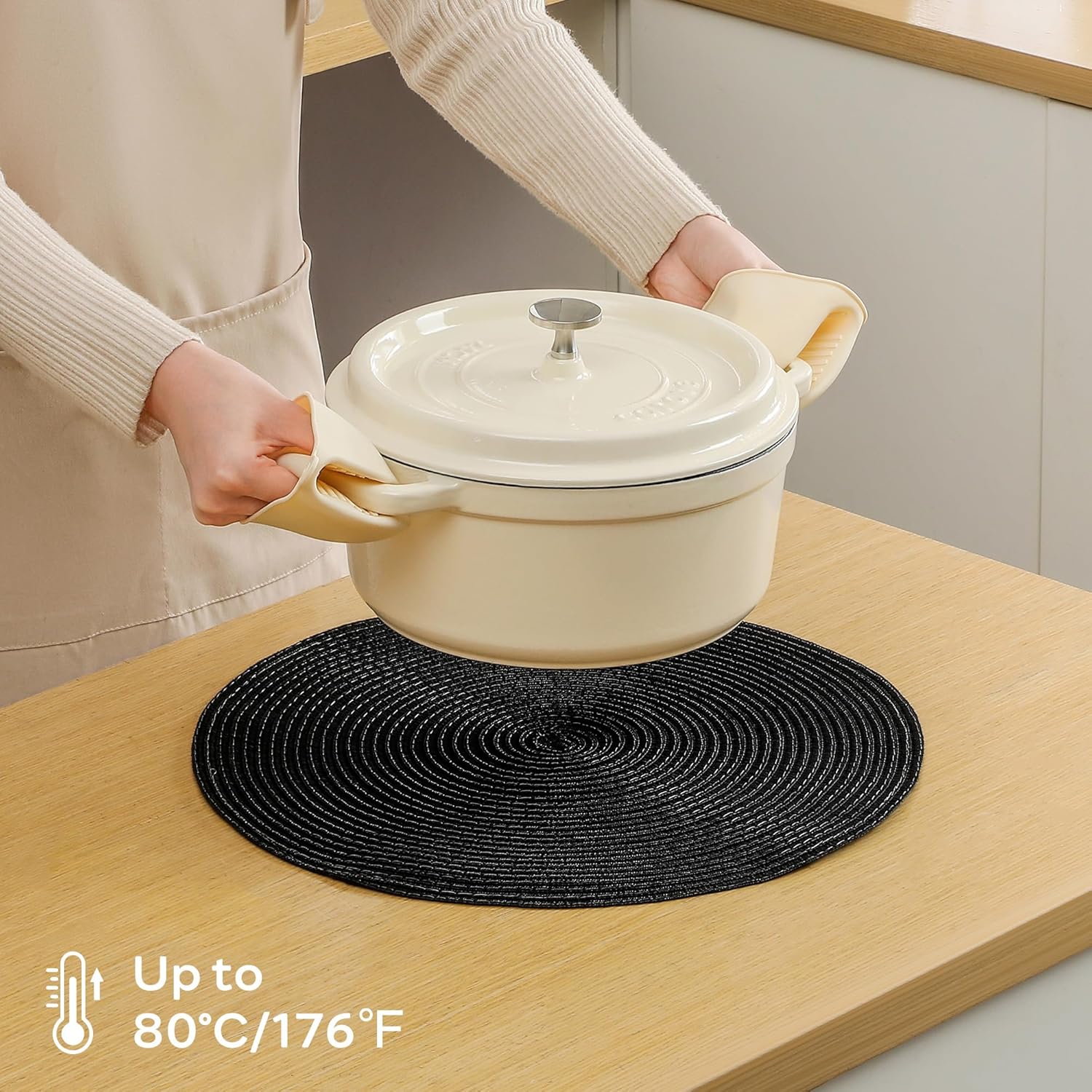 - Protect Your Dining Table: Our placemats can withstand temperatures up to 176°F (80°C), protecting your table from stains, hot food, or scratches from tableware. With a diameter of 15 inches, they perfectly fit a variety of tableware