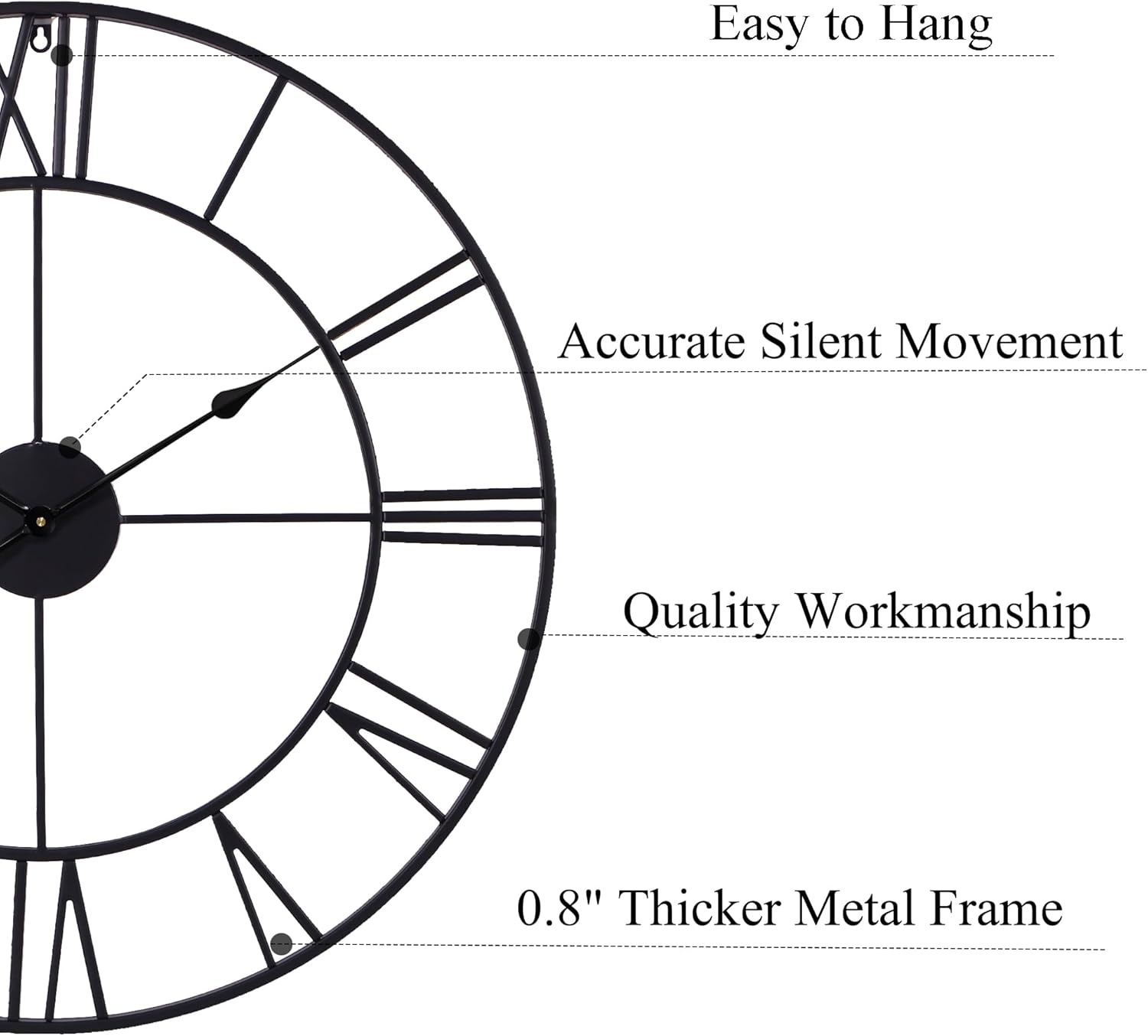 - 【Exceptional Craftsmanship】Handmade welding from high-quality 2cm thicker metal, this powder coated matt black 30 inch wall clock is built to last. Its sturdy build ensures longevity, making it a reliable oversized wall clock that enhances your living space for years to come