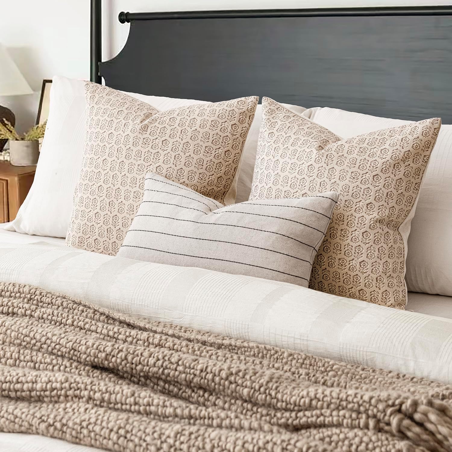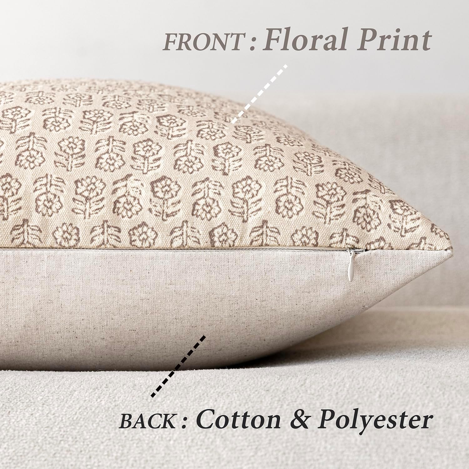 Foindtower Set of 2 Decorative Neutral Floral Print Throw Pillow Covers Vintage Accent Farmhouse Cushion Covers Boho Home Decor for Sofa Couch Chair Bedroom Living Room Outdoor,22×22 Inch,Ivory Beige