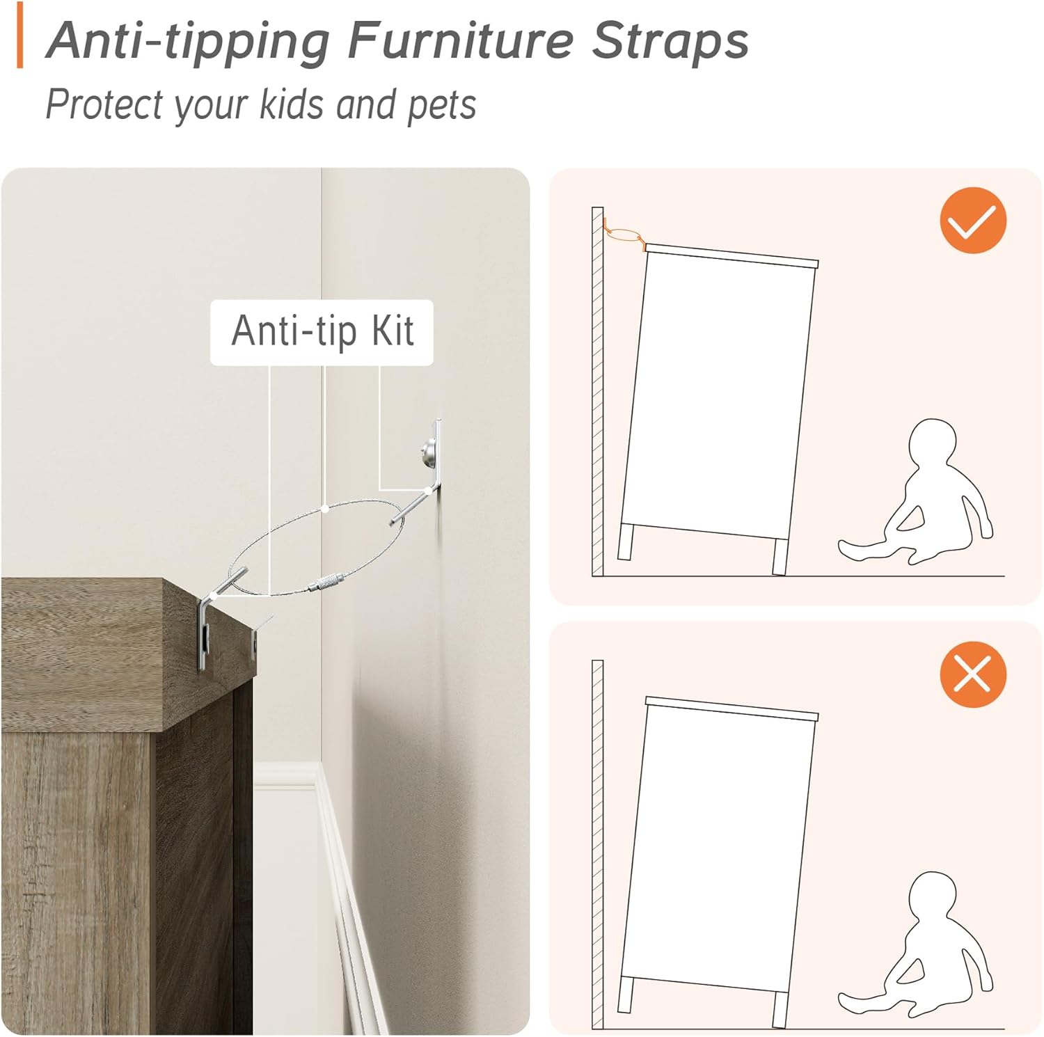 - 【Reliability&Humanized Design】The dresser for bedroom with solid wood round gourd furniture legs add beauty and ensure the stability of the storage cabinet.And an additional anti-tipping kit is also included for added safety.Total Weight Capacity: 88 lbs.The distance between the bottom plate and the floor is large enough so that the robot vacuum cleaner can pass freely.