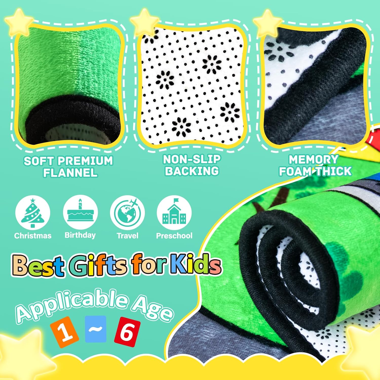 - [Upgraded Material]Our kids playmat rug is made of premium flannel,and high-resilience sponge,equipped with non-slip backing.The kids room rug is designed to provide extra cushioning and comfort,protecting babies from bumps and knocks while crawling
