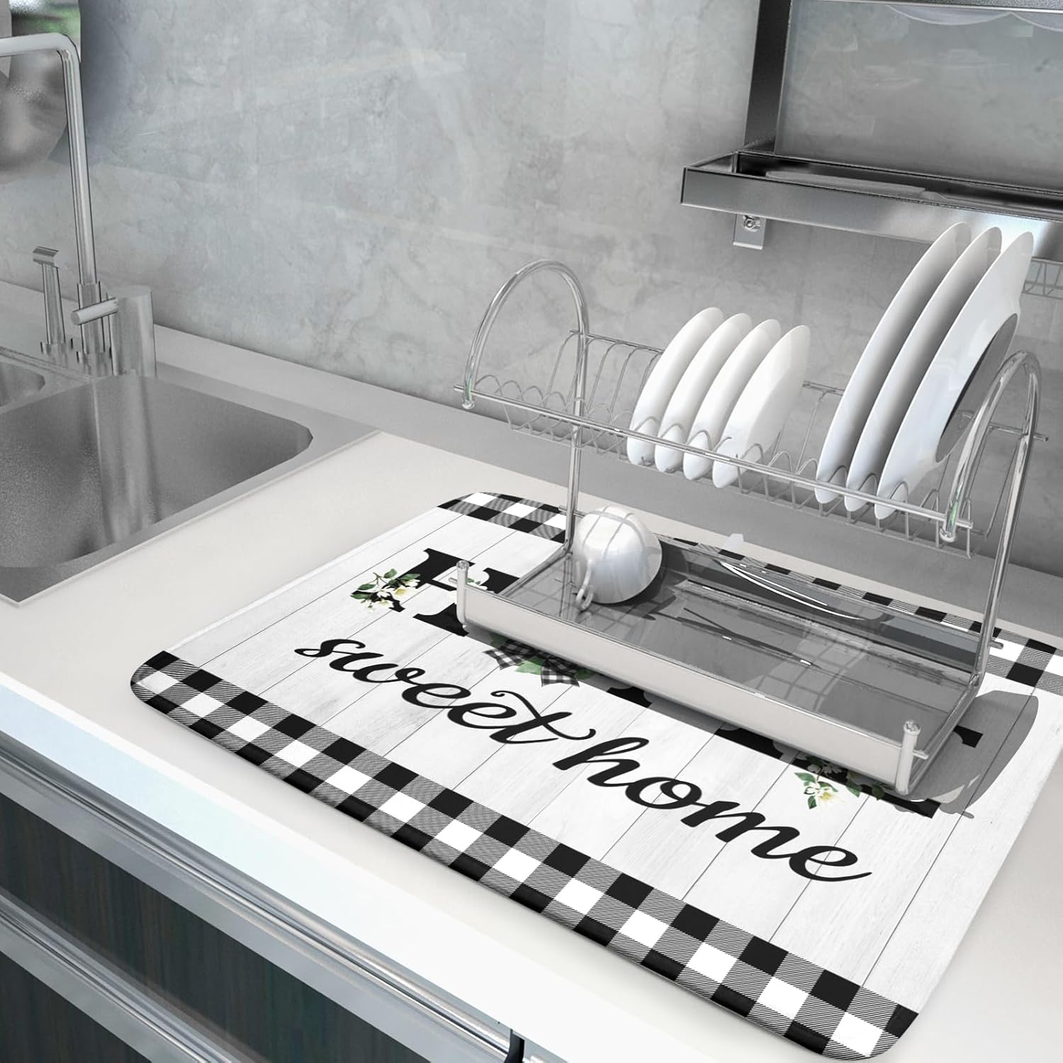 - 【Perfect Size】This farmhouse dish drying mat measures 18 x 24 Inch. Fits most kitchen countertops,while providing a smart,sharp look.