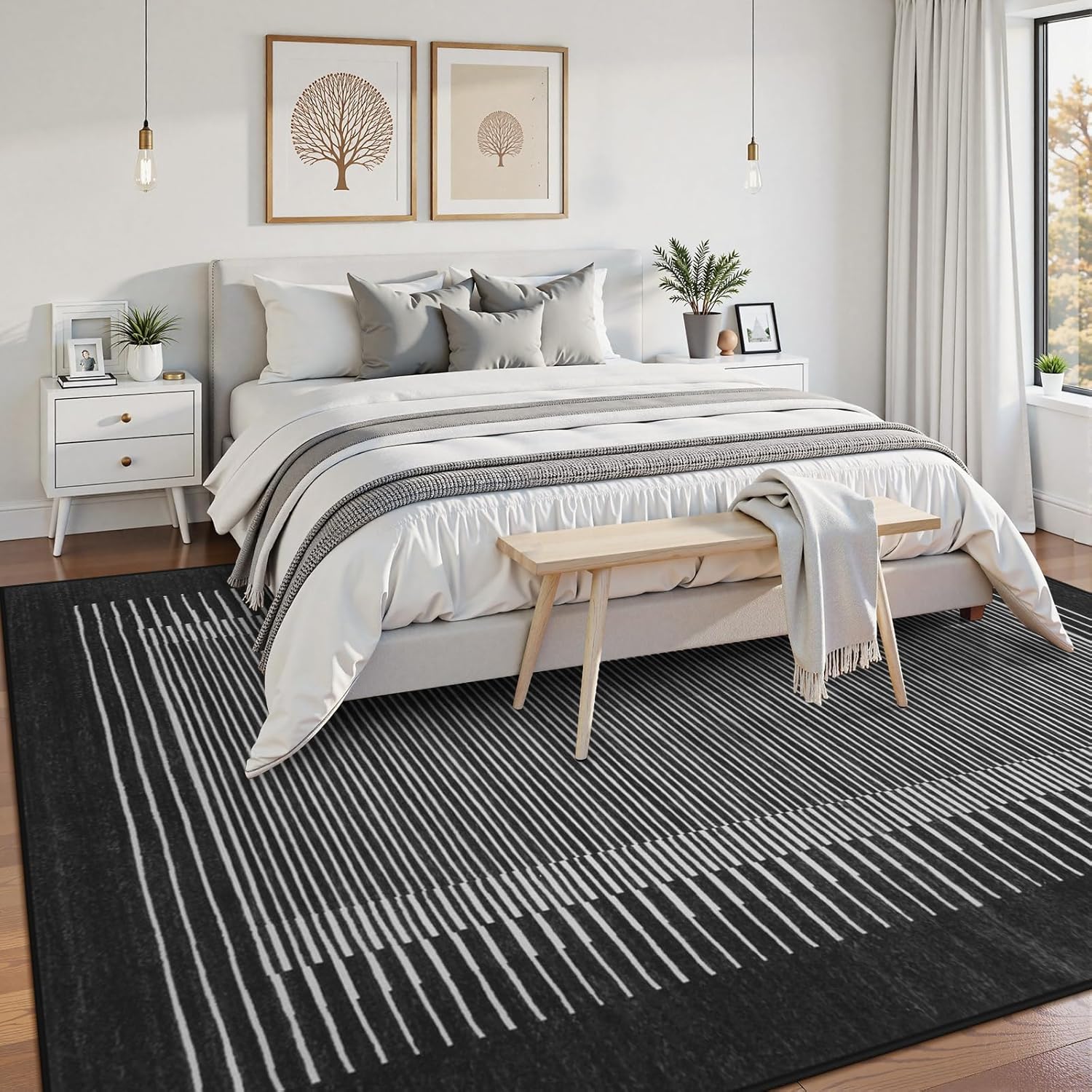 - 【Minimalist Style】: This Wonnitar area rug features smooth striped patterns that complement simple and elegant modern home decor. Add a fashionable artistic atmosphere to your bedroom, living room, nursery, dining room, office, playroom