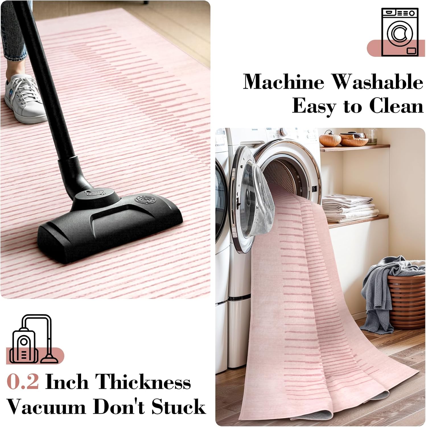 Wonnitar Washable Pink Striped Rug for Bedroom 8x10, Non-Slip Living Room Area Rug, Minimalist Berber Stripe Area Rug, Soft Floor Carpet for Nursery Playroom Closet (Pink, 8' x 10')